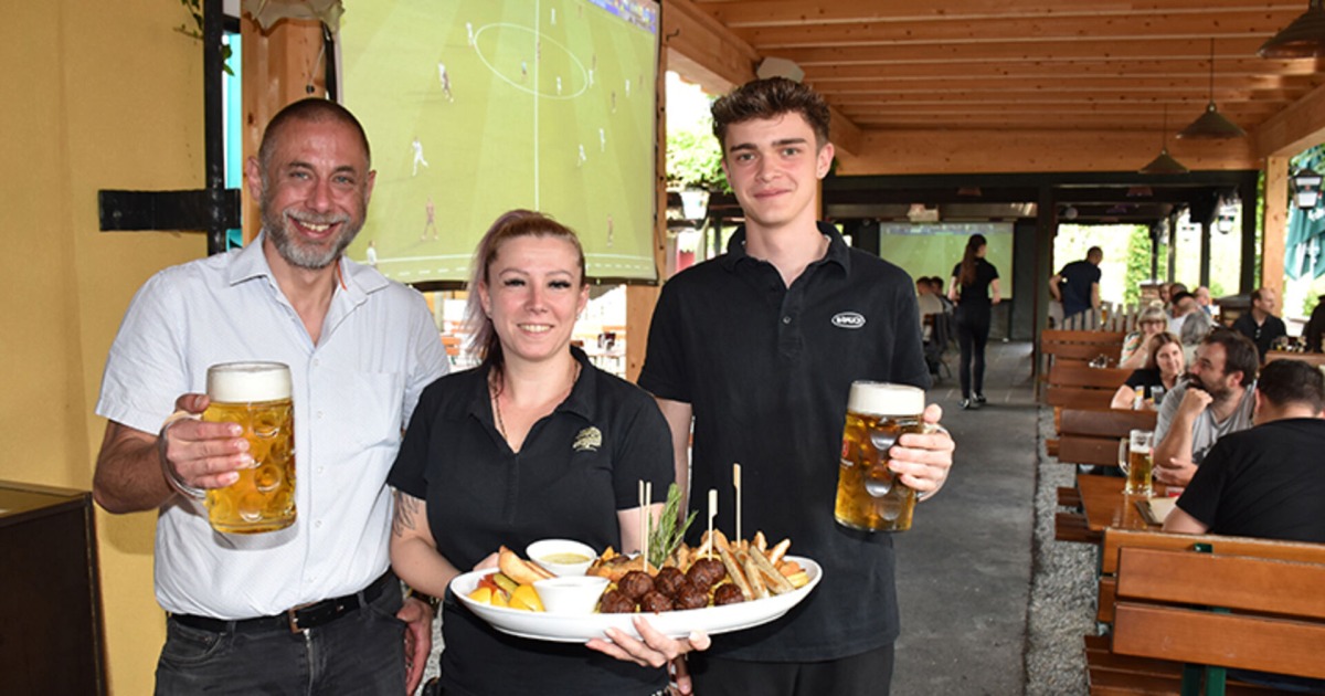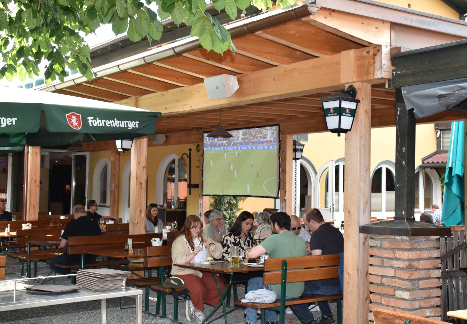 Auf 150 wettergeschützten Plätzen sorgen zwei Beamer und ein Groß-TV sowie tolle EM-Aktionen für Jubelstimmung. TOP: Noch bis 14. Juli läuft die EURO 2024: Die „EM-Fingerfood Platte“ für zwei Personen ist jetzt schon ein Volltreffer für zwei Halbzeiten.