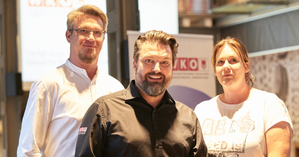 Landesinnungsmeister Martin Halbrainer, Hermann Meyer mit Maren (Meyer Objektbetreuung).