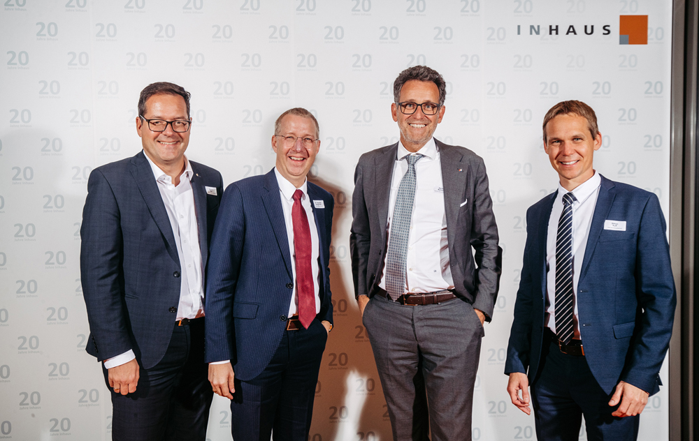 Heinrich Spoerry (SFS Holding AG), Nick Huber (HUWA Finanz- und Beteiligungs AG), Geschäftsführer Inhaus Robert Küng und Maximilian Lingenhöle (Pircher…