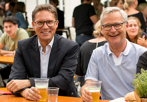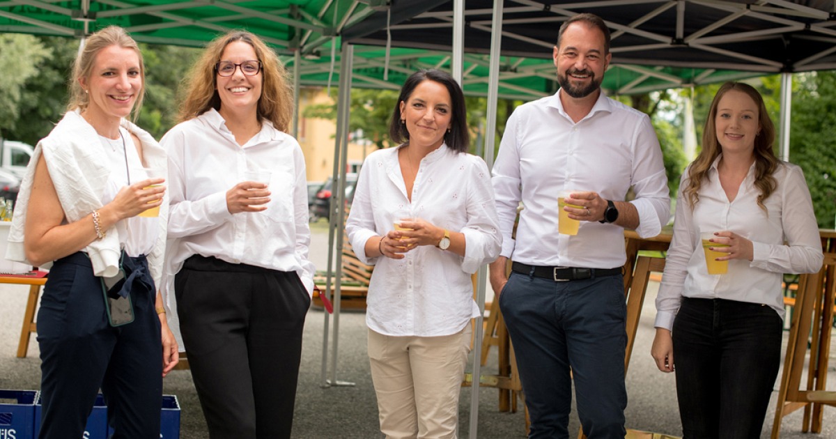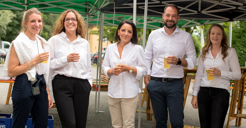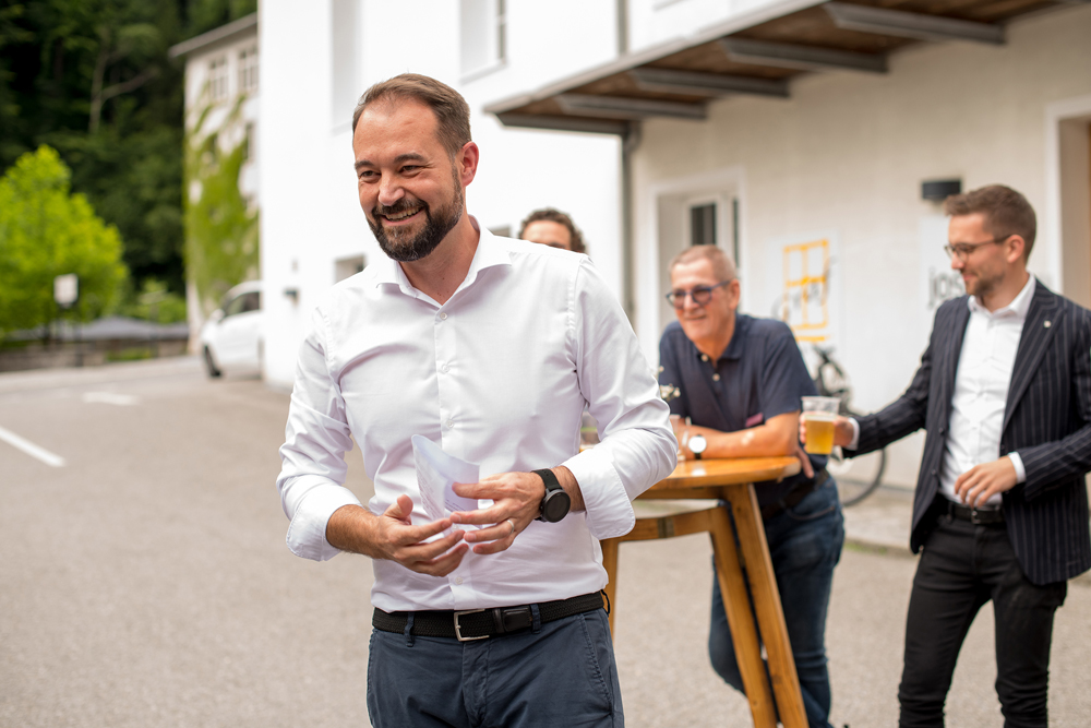 Insgesamt 230 Gäste des Steinebach Areals, des Magazins Oberdorf in der Kirchgasse, des Standorts Sägen in der Sägerstraße und der ehemaligen Industriegebäude im Gütle feierten bei bester Stimmung. TOP: Mit dem geselliges Get-together bedankt sich F.M. Hämmerle bei Kund:innen, Geschäftspartner:innen und Mitarbeiter:innen.