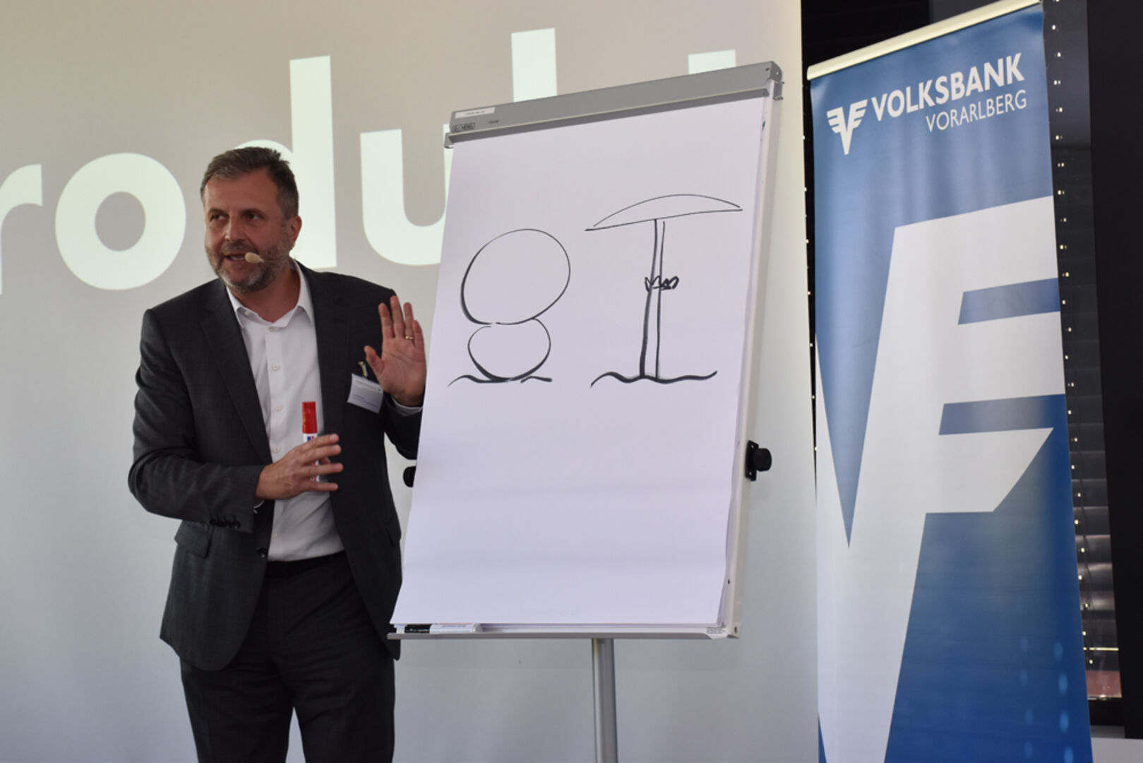 Franz Klammer gab im Interview spannende und humorvolle Einblicke, wie man sich auf seine Aufgaben konzentriert, überwindet und Siege einfährt. Der Impulsvortrag von Unternehmensberater Herbert Loos erklärte welche Kraft in Bildern und Symbolen stecken kann. TOP: Die Präsentation von Zeitdokumentvideos und Auschnitten aus dem neuen Film „Klammer – Cashing the Line“.