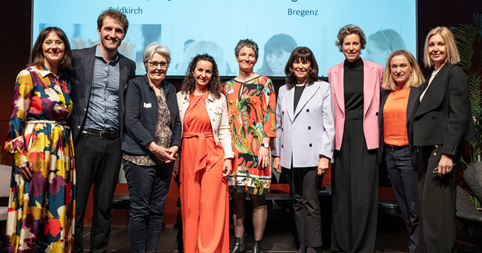 Bild oben: Andrea Längle (FIW Vorstand), Tim Mittelberger (Dorfelektriker), Angelika Hagspiel (Kinderbetreuung Vlbg.), FiW GF Karin Furtner, Alexandra Hefel (Collini), Martha Schultz, Carina Pollhammer, Helga Boss (Unternehmensberatung) und Anna Claudia Strolz (Strolz Leuchten) (v. li.)