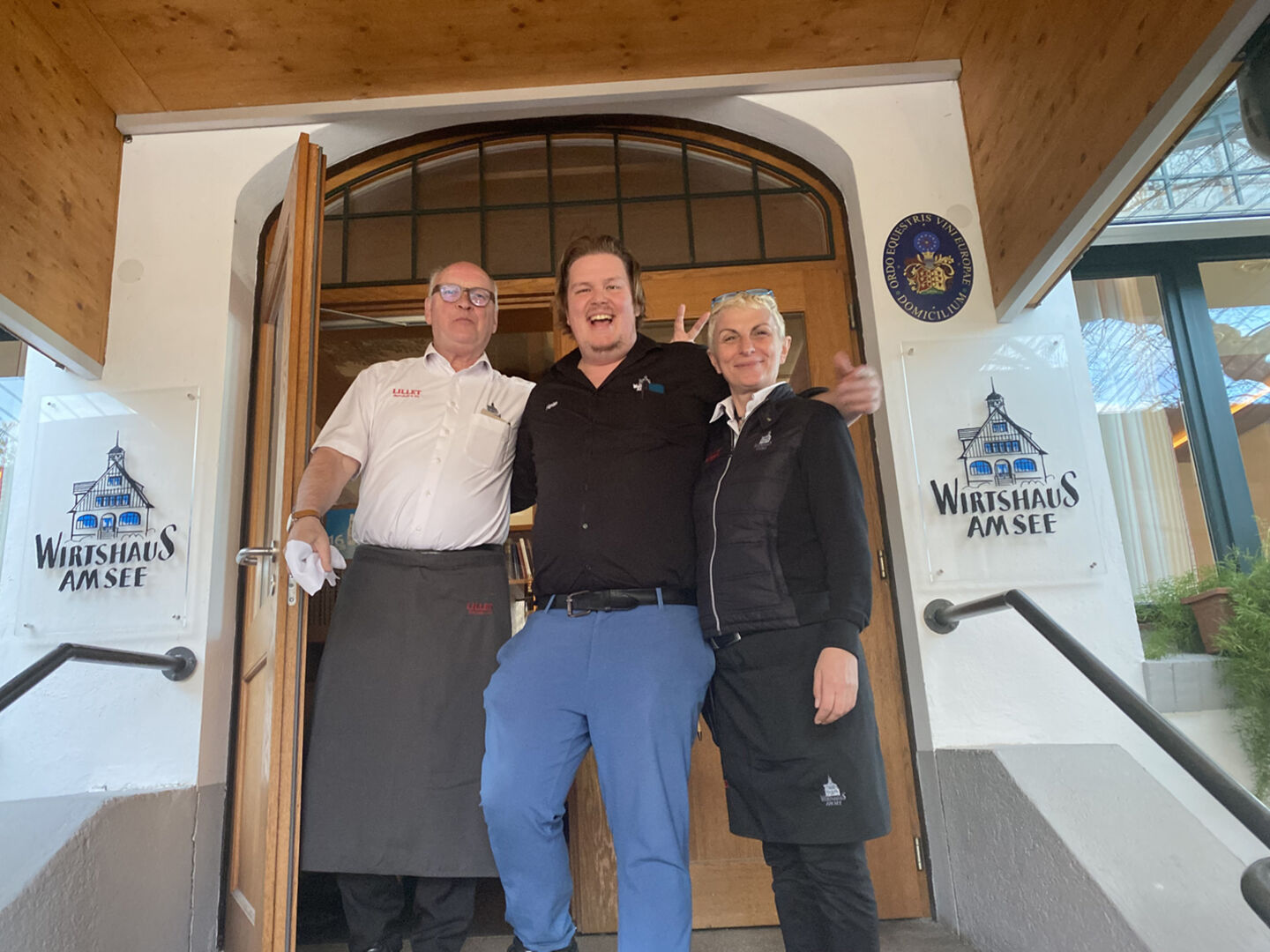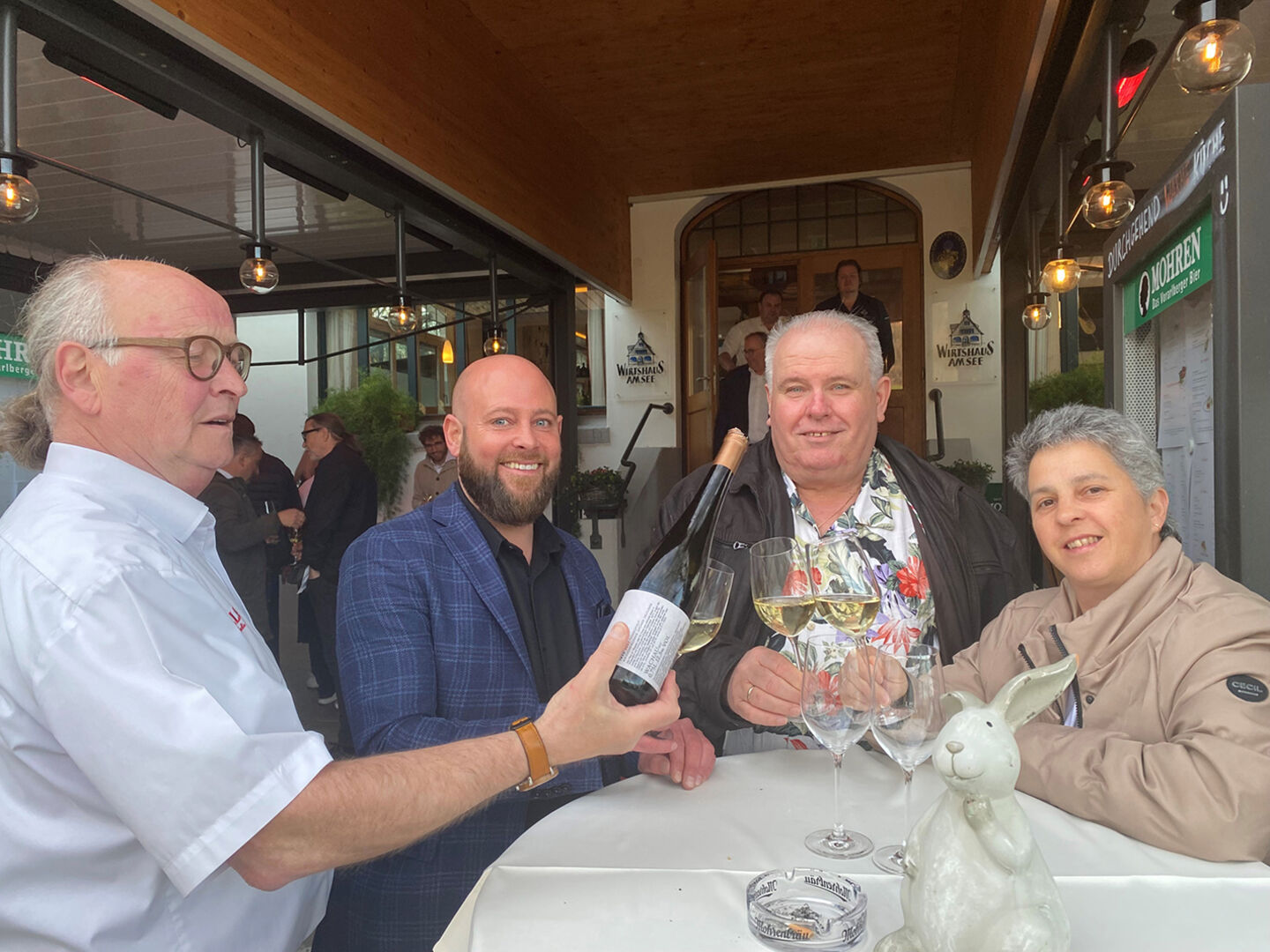 Wirtepaar Martin und Daniela Berthold (Wirtshaus am See), Winzer Mathias Hirtzberger und Weinhändler Walter Pfanner (v. li.)
