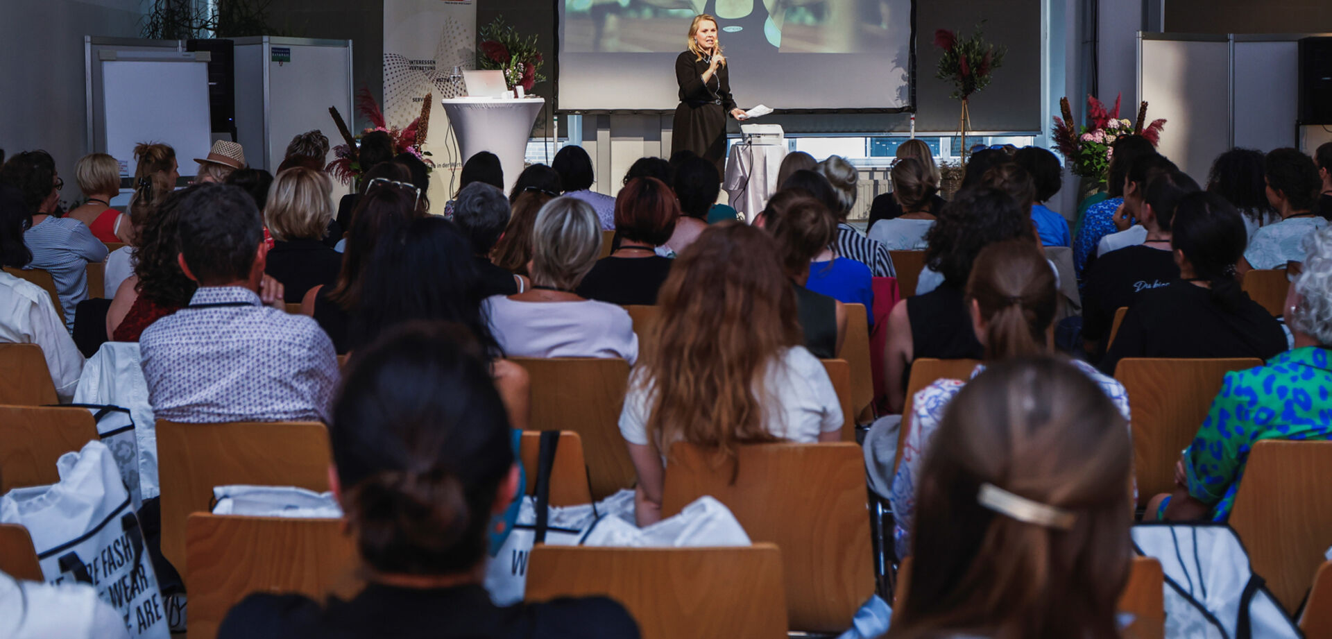 Moderatorin Heidi Winsauer, Patricia Kelly, Marietta Babos, Helga Boss, Sarah Irina Dörler, GF Karin Furtner (Frau in der Wirtschaft)