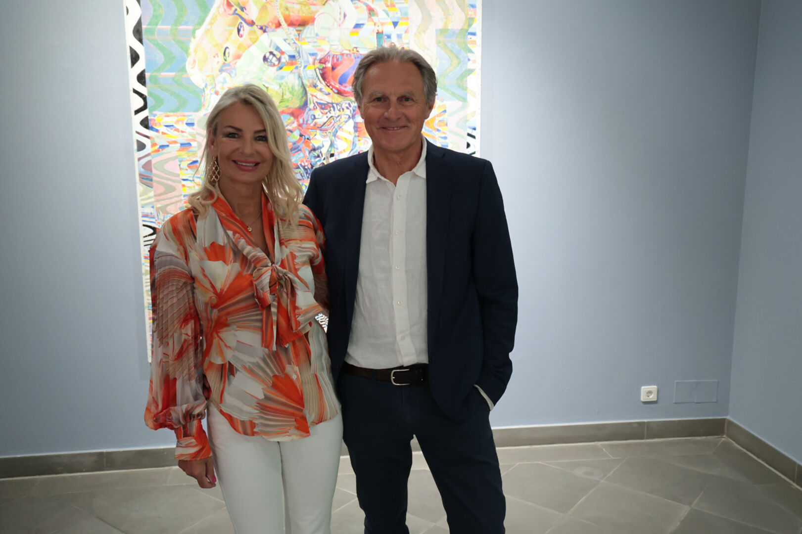 Peter Krüger (Köln), Galerist Calvin Mechora, Künstler Urôs Weinberger, „VK“ und Galeristin Leonie Hirn (v. li.)