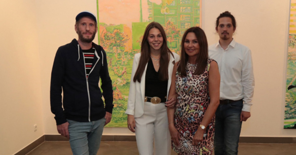 Ausstellender Künstler Uros Weinberger, Galeristin Leonie Hirn, Sabine Hirn und Calvin Mechora.