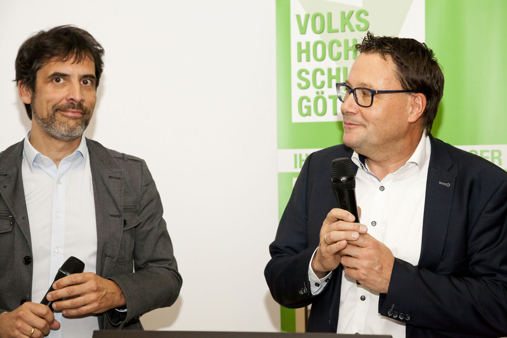 Silvia Hauser (GF VHS Hohenems) und Gerhart Hofer (Alt-Dir. Kathi-Lampert-Schule)