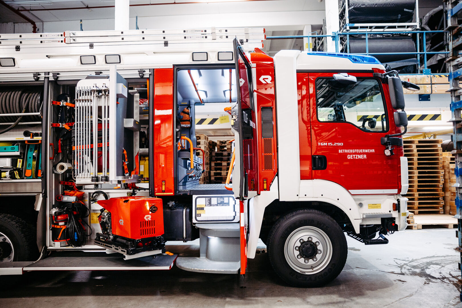 Andreas Häusele mit Leah, Markus Nägele mit Jakob (Betriebsfeuerwehr Getzner) (v. li.)