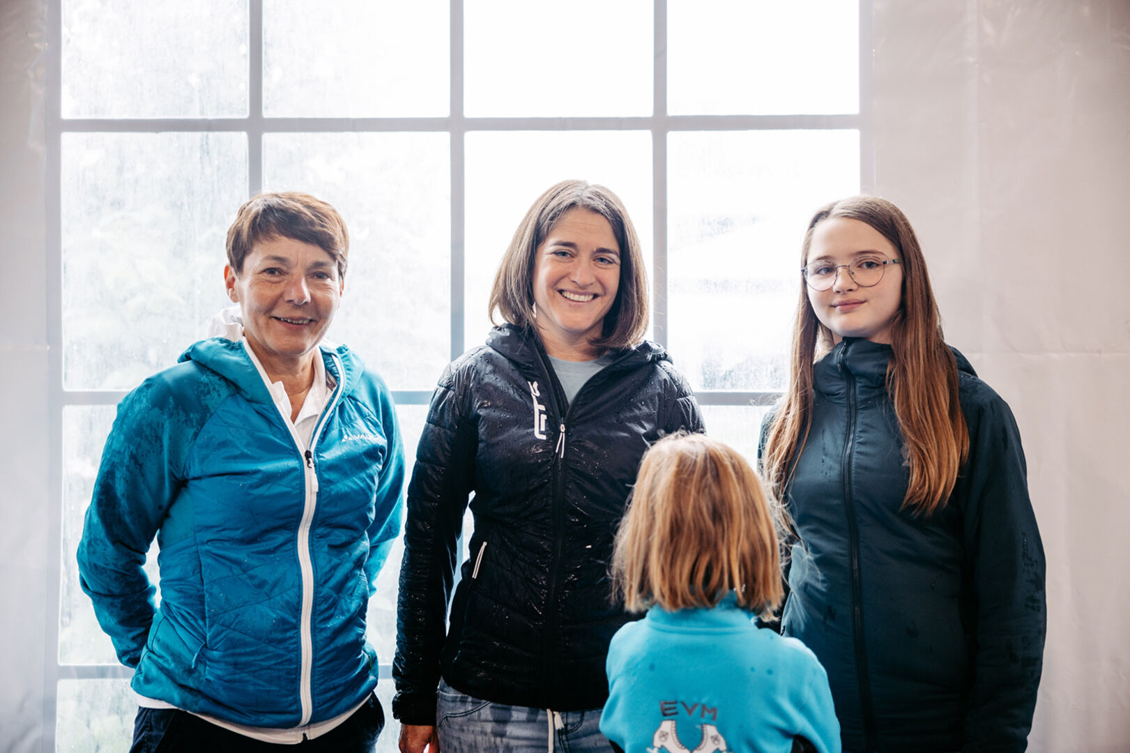 Mama Gabriele mit Julia Pötzschner (Management Assistant) und den Kindern Ben und Leon (v. li.)