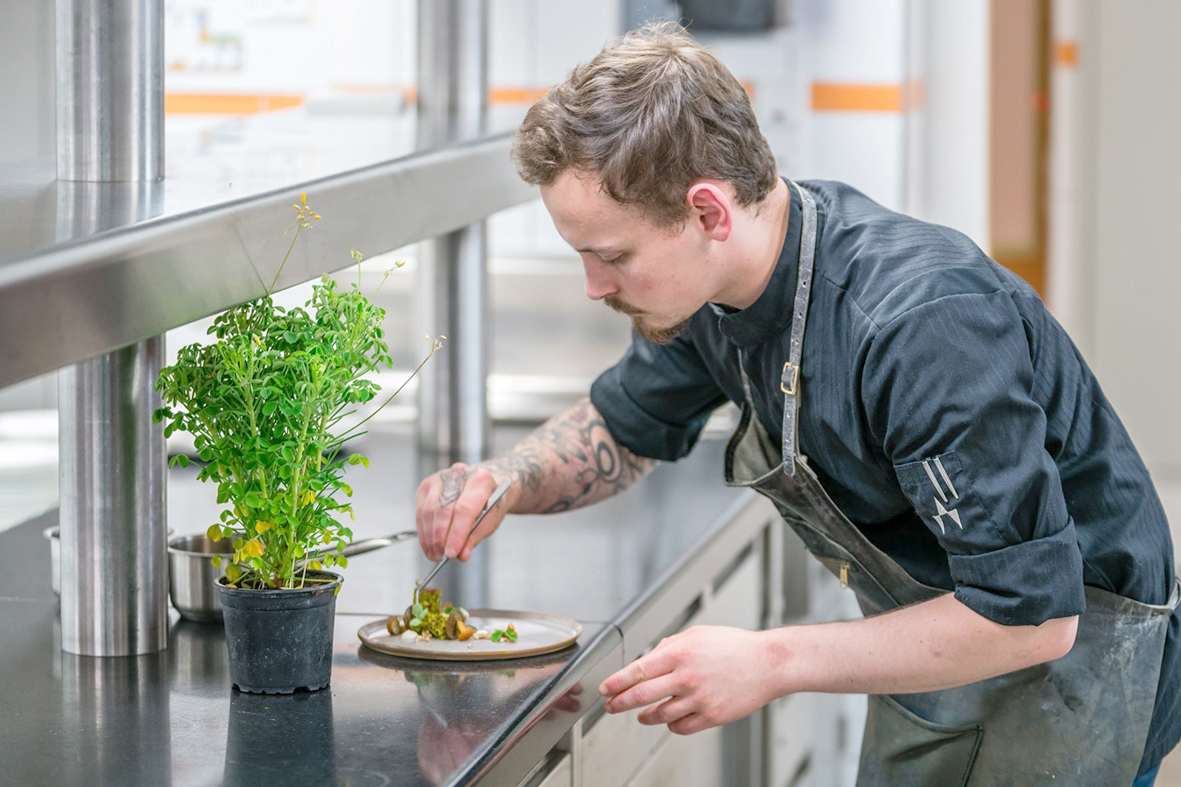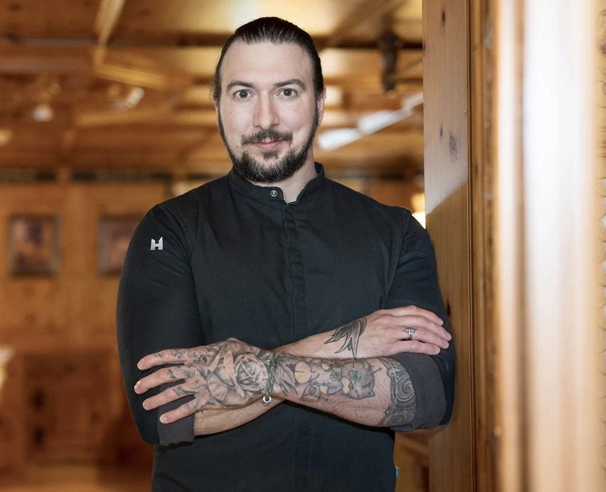 Dominic Mayer, Inhaber und Küchenchef im Wirtshaus Hörnlingen in Rankweil ist ein begnadeter Koch, Genussmensch und kulinarischer Visionär. Nach Stationen wie Hotel Montana Lech, Löwen Hotel Montafon, Alpina Gstaad und als Souschef im Kreuzwirt am Pössnitzberg unter Gerhard Fuchs machte er sich zuletzt als Küchenchef im Feldkircher Rio einen Namen. 2018 eröffnete er das Hörnlingen in Rankweil und gewann mit seinem Team 2019 den Innovationspreis in Vorarlberg.