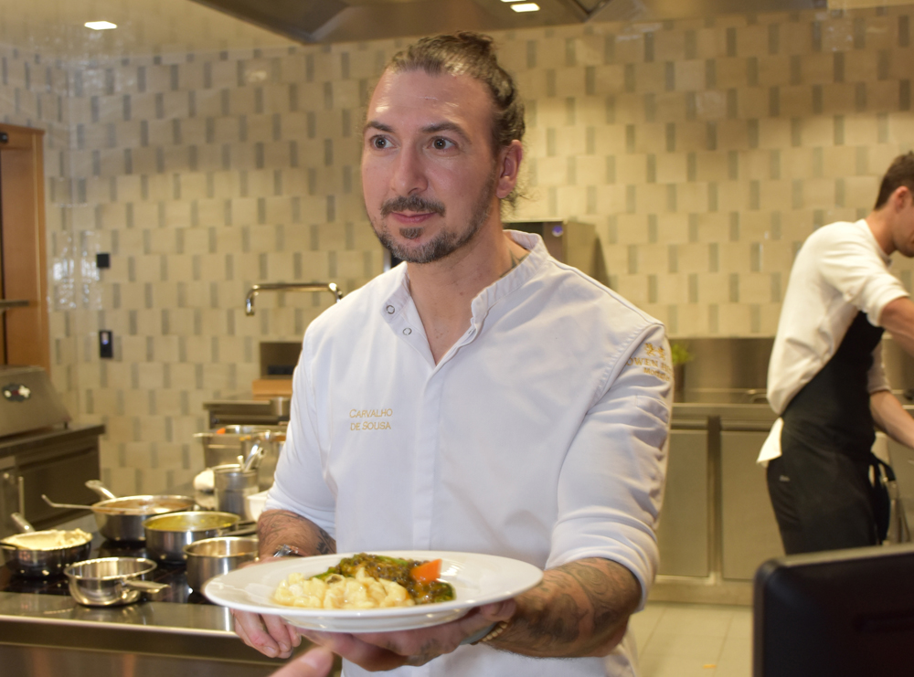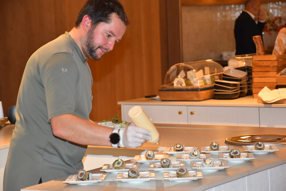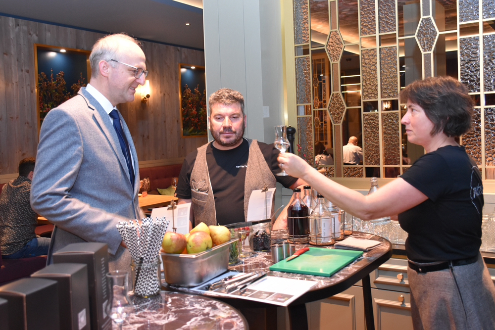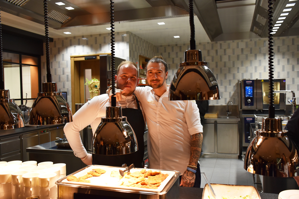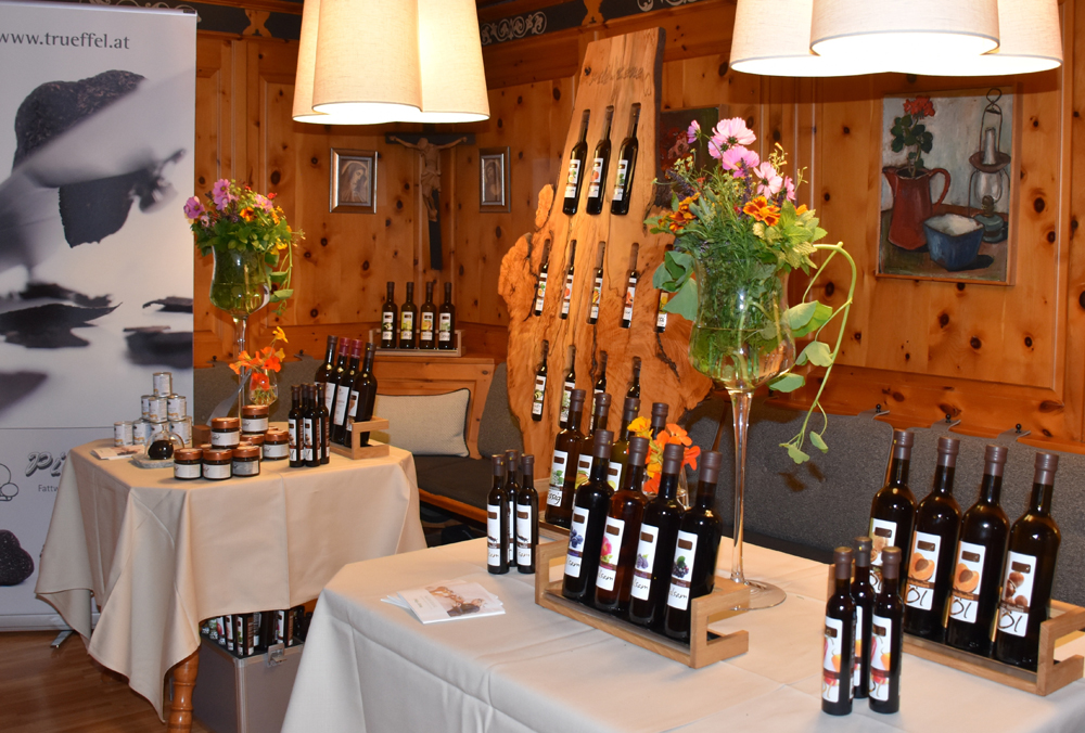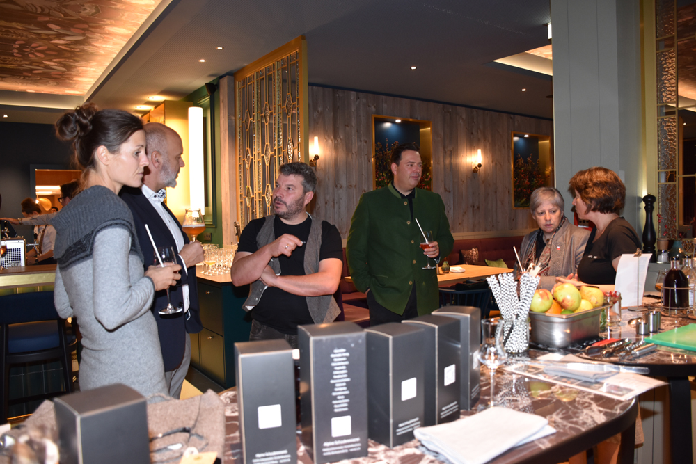 Zusätzlich zur großen Showküche mit neuem Buffetbereich präsentierten acht Betriebe ihre regionalen Spezialitäten, die auch sonst auf den Getränke- und Speisekarten des Hotels zu finden sind. DJ Lenny Marten sorgte für den coolen Sound zur Gourmetparty. TOP: Das LEONIS-Angebot (französisch/österr. Küche) richtet sich auch an Einheimische oder andere Gäste aus Schruns und Umgebung.