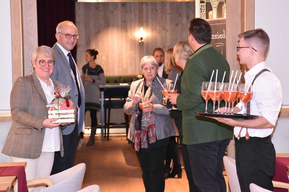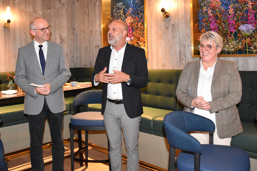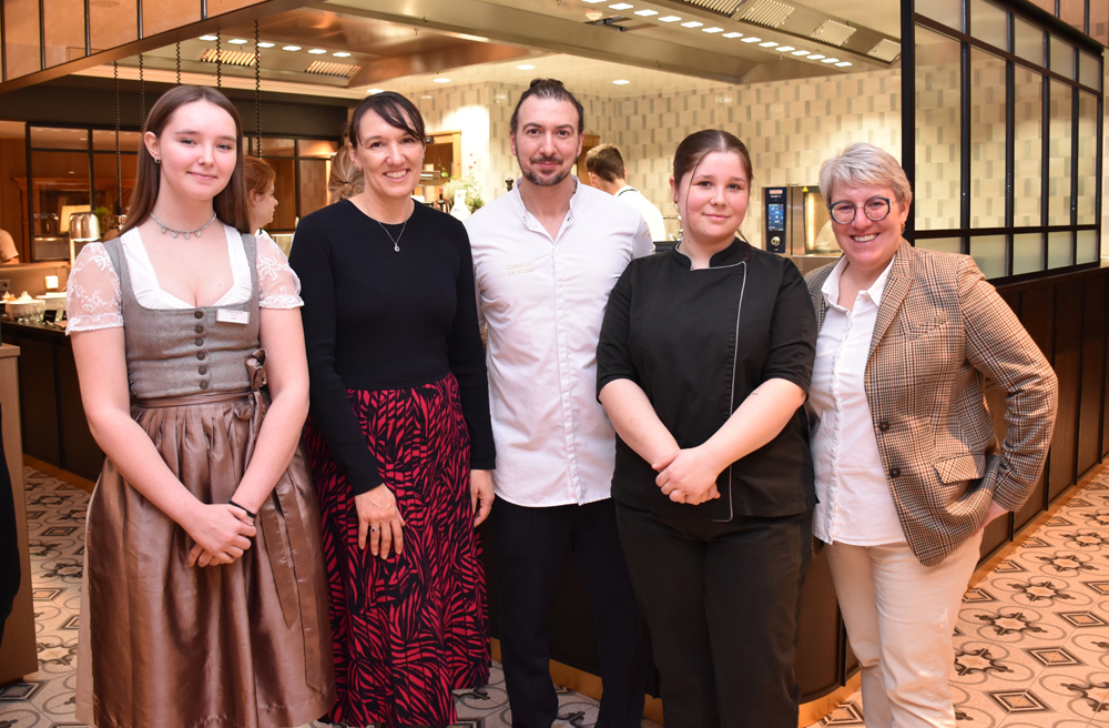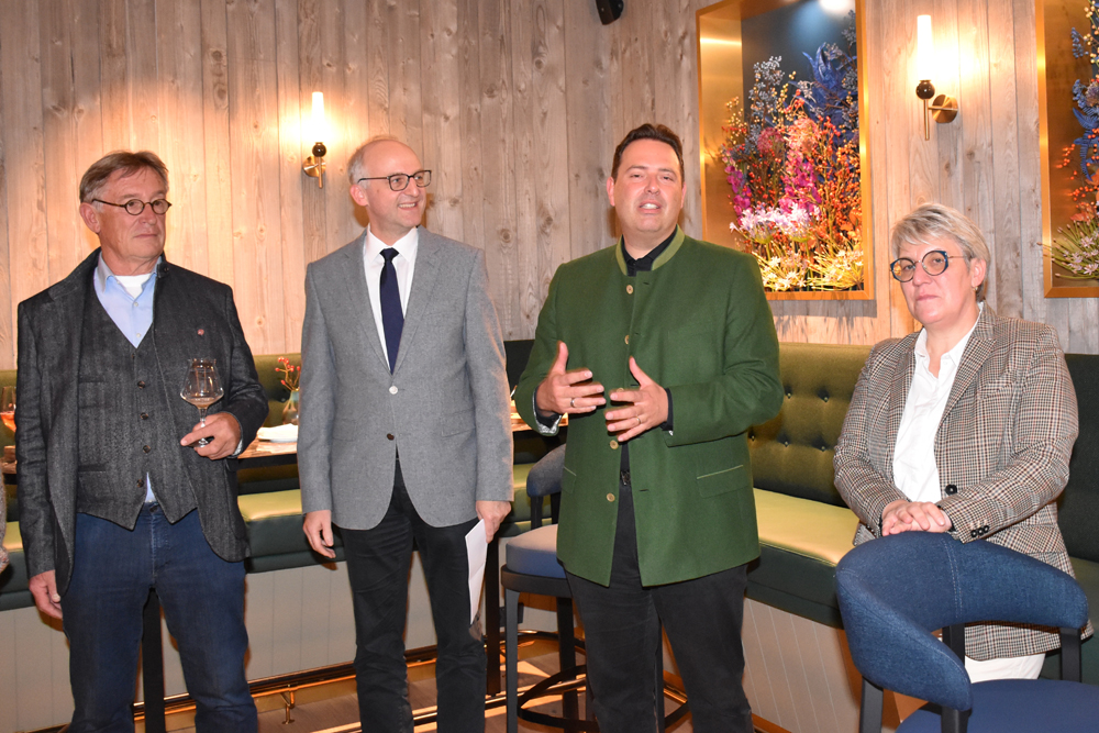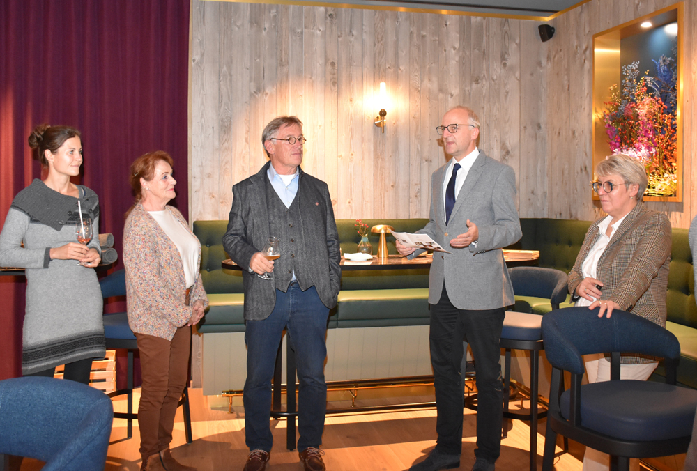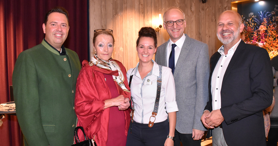 Manuel Bitschnau (Montafon Tourismus), die ehem. Löwen-Wirtin Irmi Sachs-Ritter, Leonis Brasserie-Restaurantleiterin Fabienne Hammer, Löwen Hotel Montafon Dir. Gunter „Rick“ Voigt und Schruns Bürgermeister Jürgen Kuster.