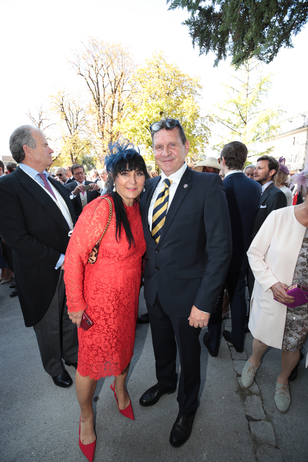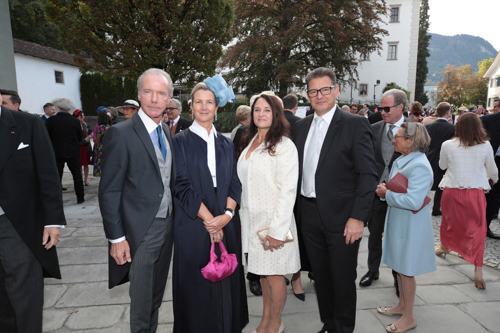 Philipp Eisl und Tatjana Waldburg Zeil, rechts dahinter die Brauteltern Franz-Clemens und Stephanie Waldburg-Zeil.