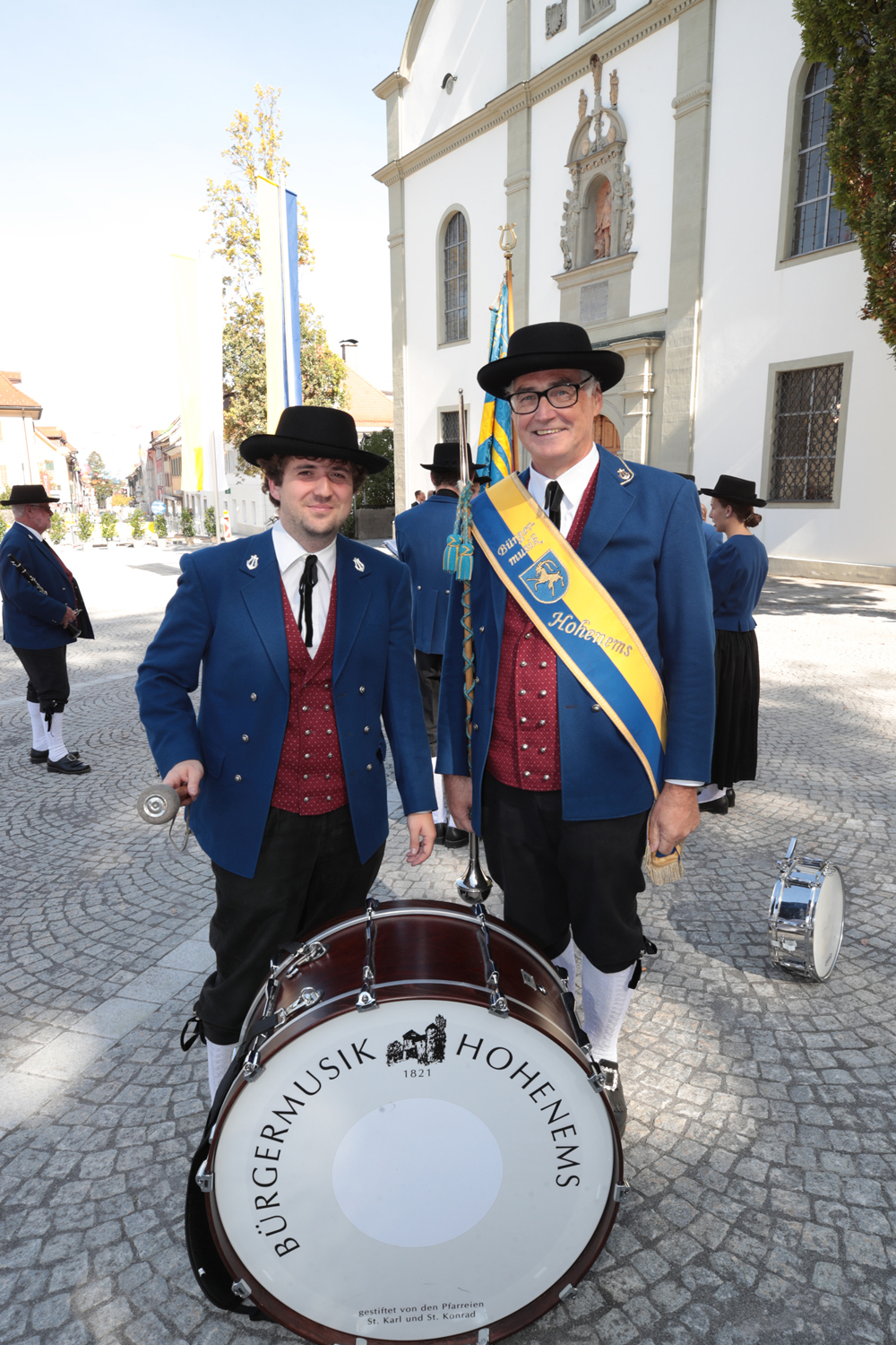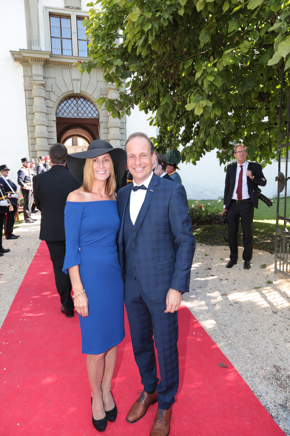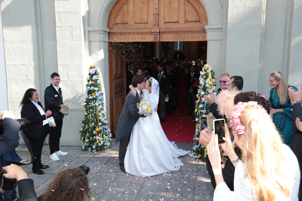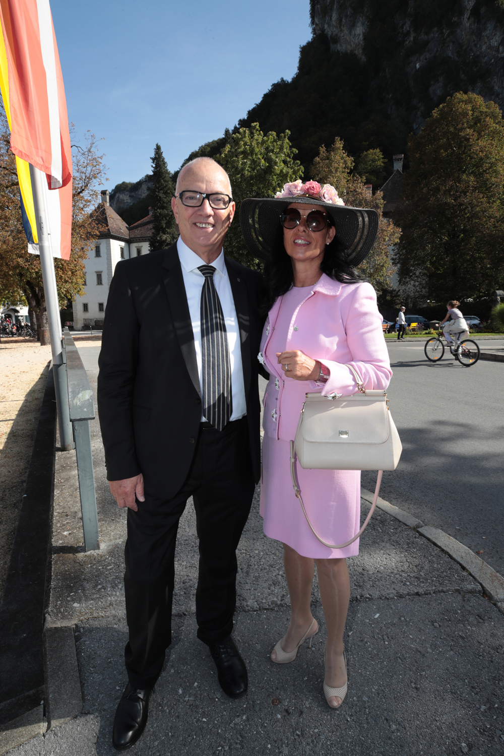 Die als Begleiterin von Paaren, die ihre Hochzeit im Palast Hohenems und teils auch auf Schloss Glopper feiern wollen, tätige Braut hat schon lange von der eigenen Hochzeit im Palast geträumt. Die kirchliche Trauung nahm Pfarrer Thomas Heilbrun vor, die Bürgermusik Hohenems, unter Leitung von Andreas Gamper, spielte vor und nach der Messe auf. Für ein stilgerechtes Spalier und Ehrenwache sorgten Angehörige des „Korps 14 Edelweiß“. TOP: Der abendliche Besuch des Niederländischen Königspaares Willem-Alexander und Máxima.