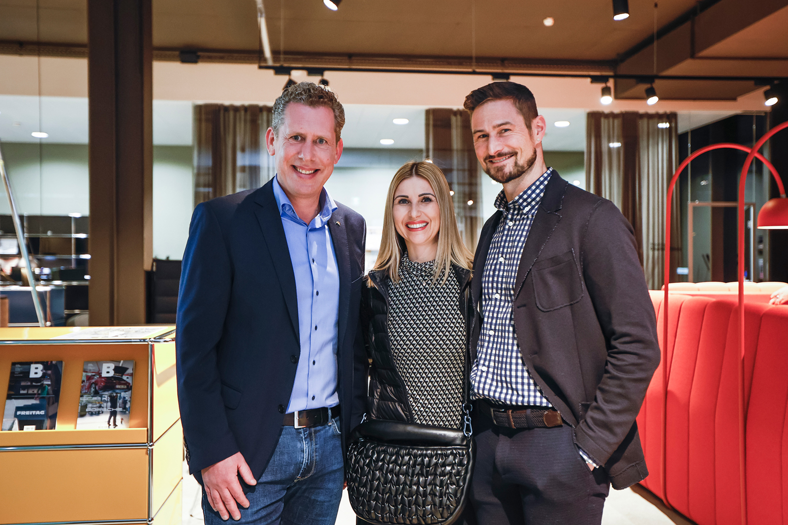 GF Tim Mittelberger (Conceptlicht), GF Manfred Bauer (Tschabrun) und GF Harald F. Künzle (Reiter Design) (v. li.)