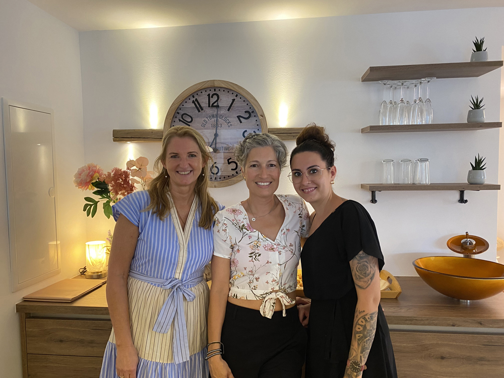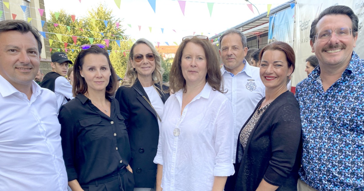 Bgm. Martin Staudinger, Simone Kitzmüller (GF Hofsteig Card), Grafikerin Petra Wolfgang, Michaela Sutter (Wige Hard), Stephan Schrott (Raiba), Nicole & Michael Navading (MN Bau Hard) (v.l i.)