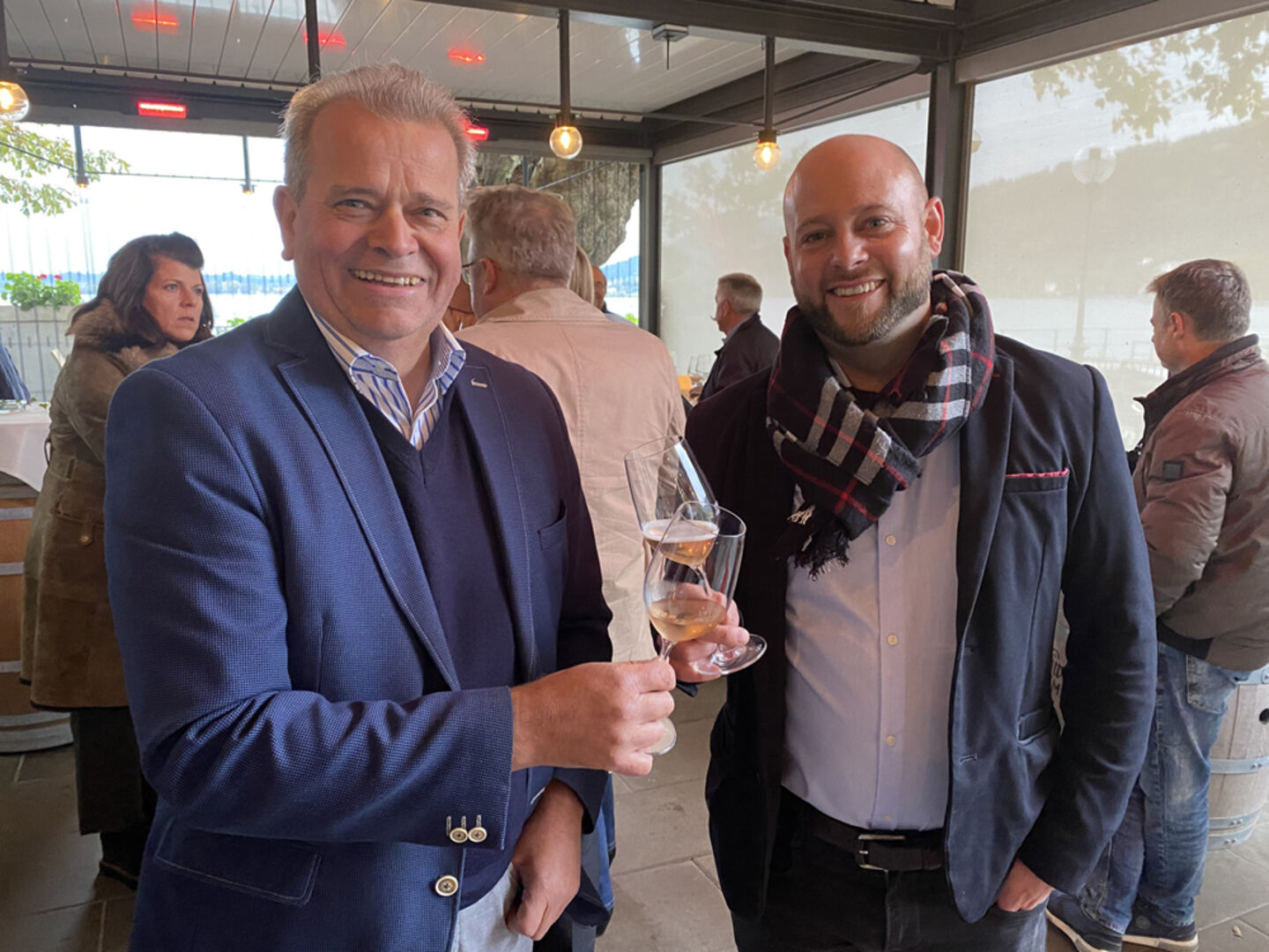 Christian Greber (Restaurant Gebhardsberg) und Boris Gehrer (Pfanner Weine) (v. li.).