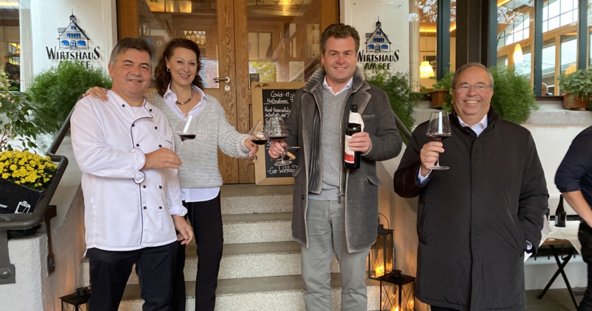 „Wirtshaus am See“ Wirtepaar Martin & Daniela Berthold, Winzer Gerhard Markowitsch und Weinhändler Walter Pfanner (v. li.).