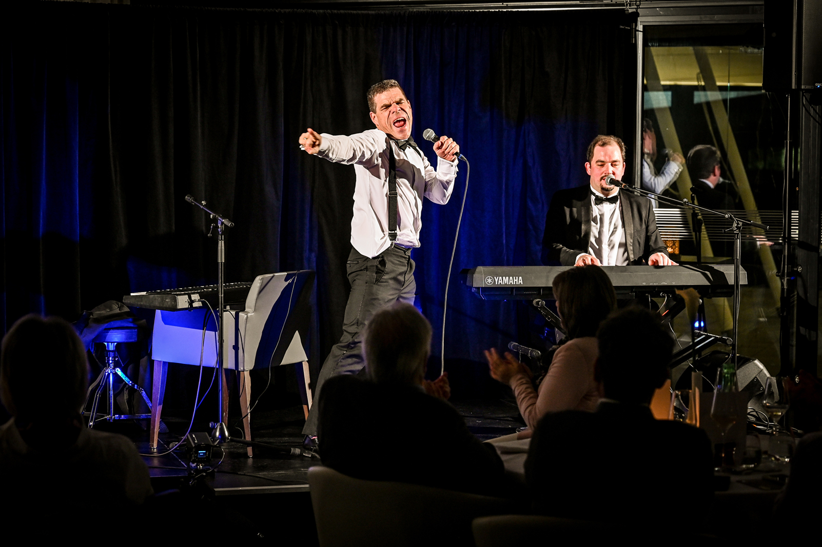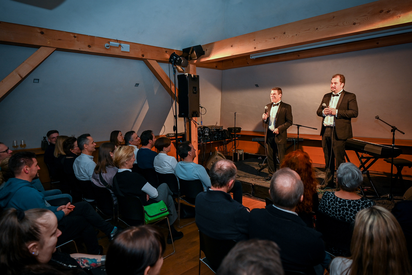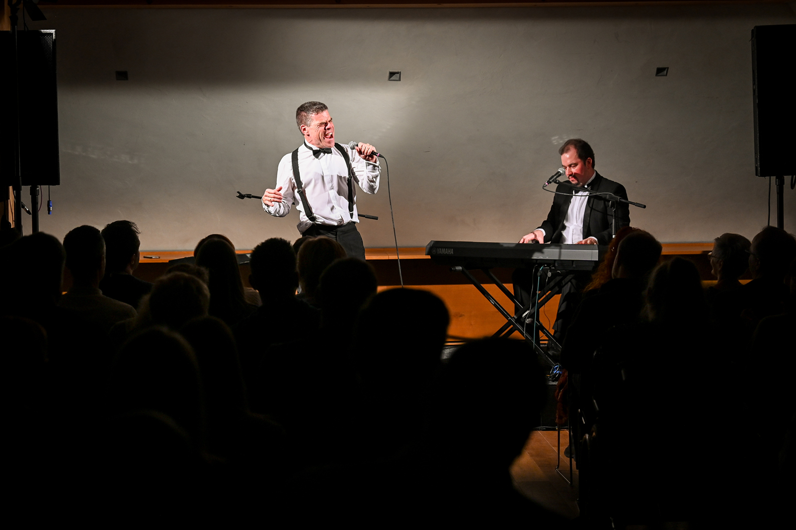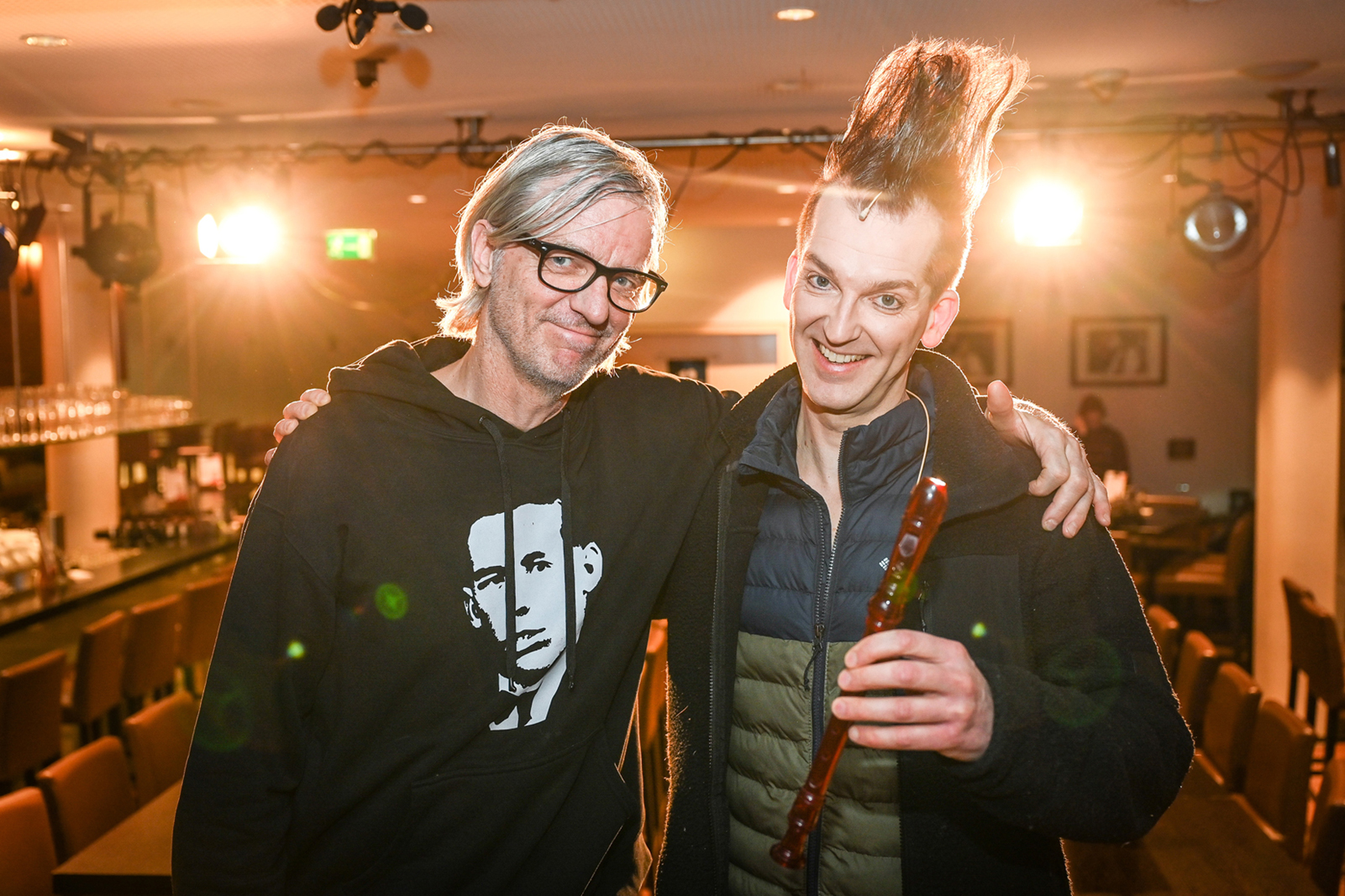 Moritz Bio-Restaurant Hohenems: Die Künstler „Notenlos“ mit Moritz Gastgeber Marc Brugger (Mitte).