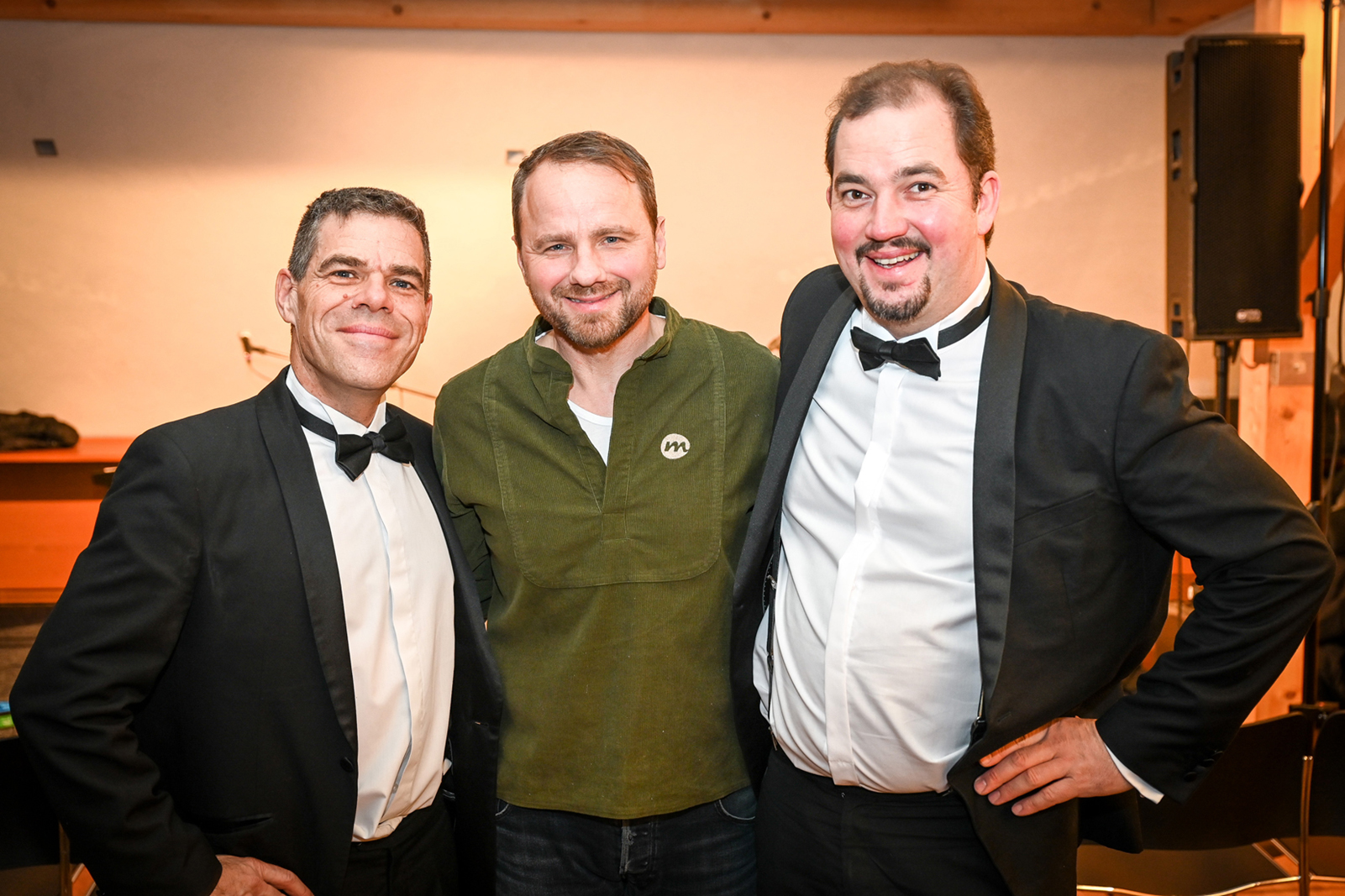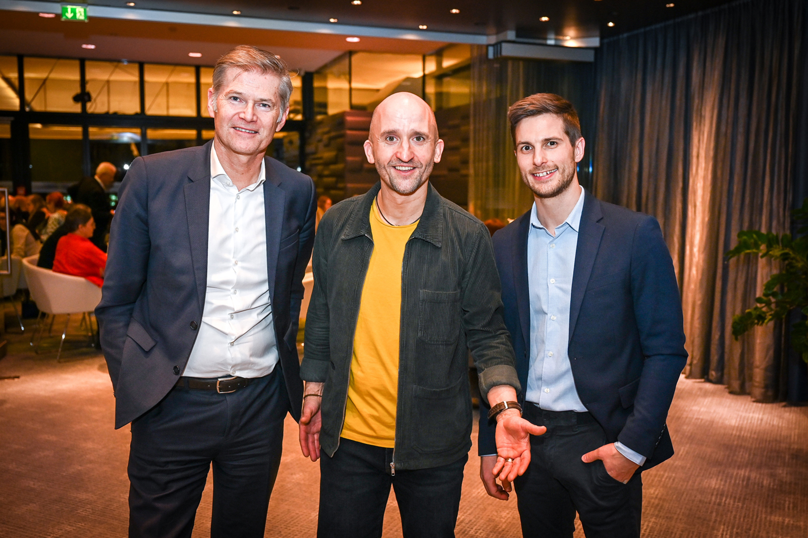 Falstaff Bregenz: Casino Direktor Bernhard Moosbrugger mit Künstler Markus Barth und Fabian Ronjak (Casino Marketing) (v. li).