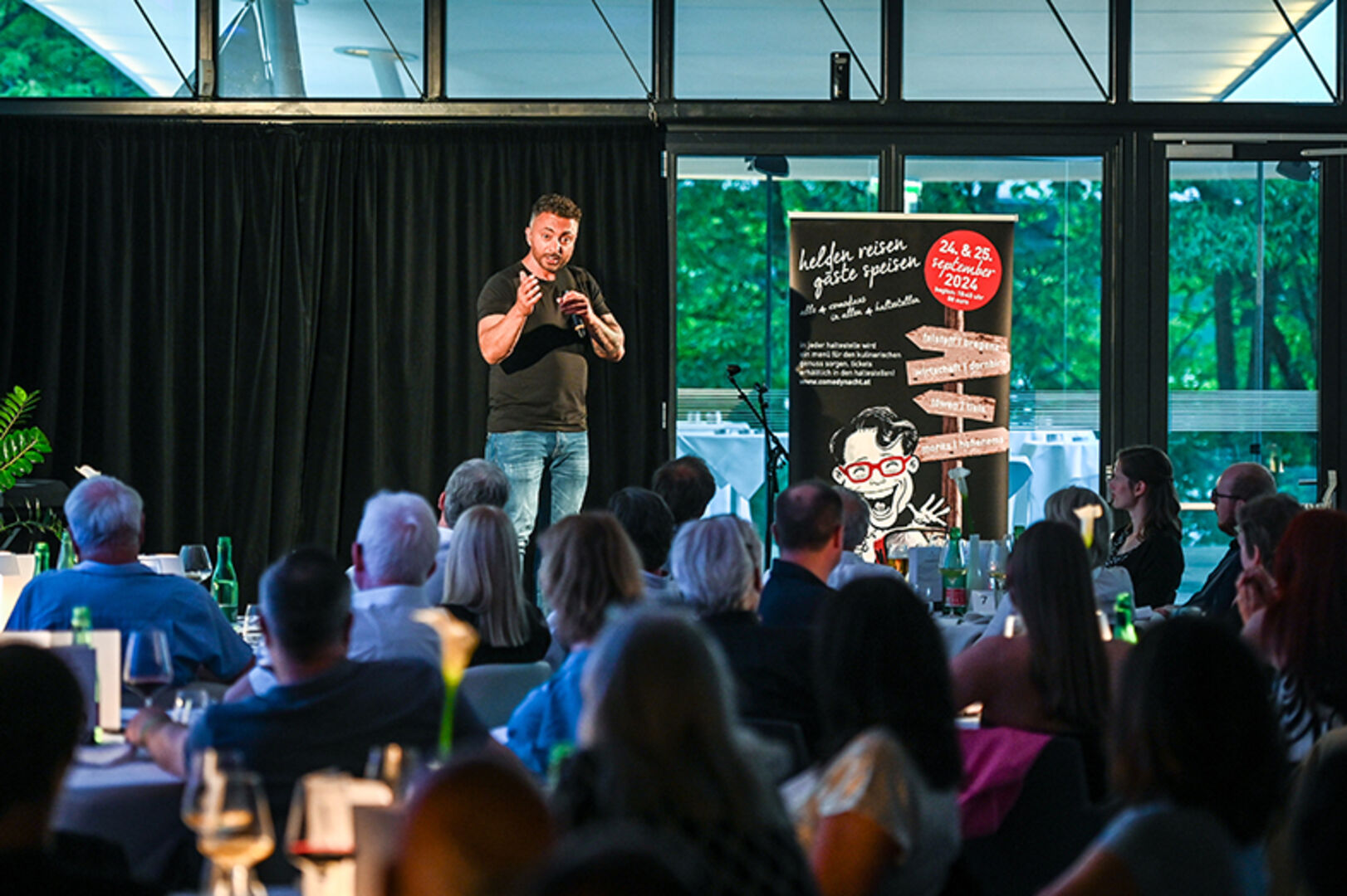 Erleben Sie vier verschiedene Comedians und lassen Sie sich von einer der vier Haltestellen kulinarisch verwöhnen. Während Sie sitzen bleiben, reisen die Helden (Künstler) weiter. Mit dabei: Kulturhaus Dornbirn, Moritz Bio-Restaurant Hohenems, Casino Restaurant FALSTAFF Bregenz und Wirtschaft Dornbirn. TOP: Informationen und Reservierungen: www.comedynacht.at