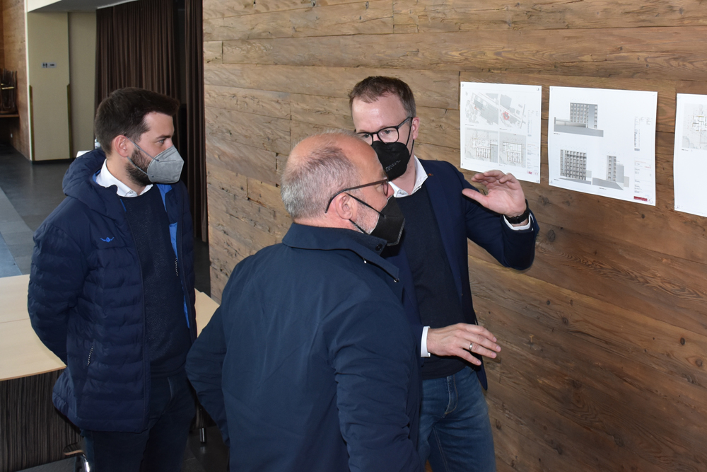 LR Christian Gantner, Bauherr Mario Wilfinger und Bludenz-Bürgermeister Simon Tschann (v.li.)