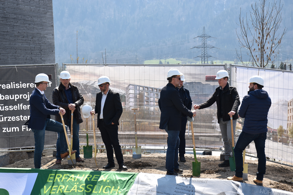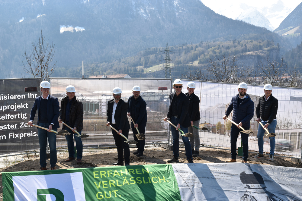 Vertreter von Land, Stadt und Baupartner beim Spatenstich mit der Gastrofamilie Wilfinger für das neue "ALPSTADT HOTEL" in Bludenz