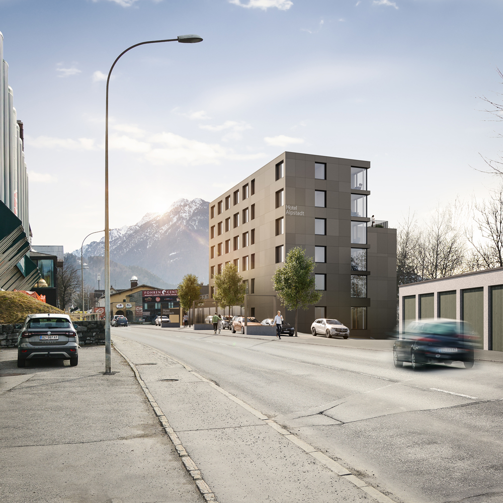 Das neue ALPSTADT HOTEL in Bludenz: 65 Zimmer mit Penthouse, 7-stöckig, 3500 qm, Multifunktionsräume, Sky-Terrasse, Verbindung ins Fohrencenter mit Tagungssaal…