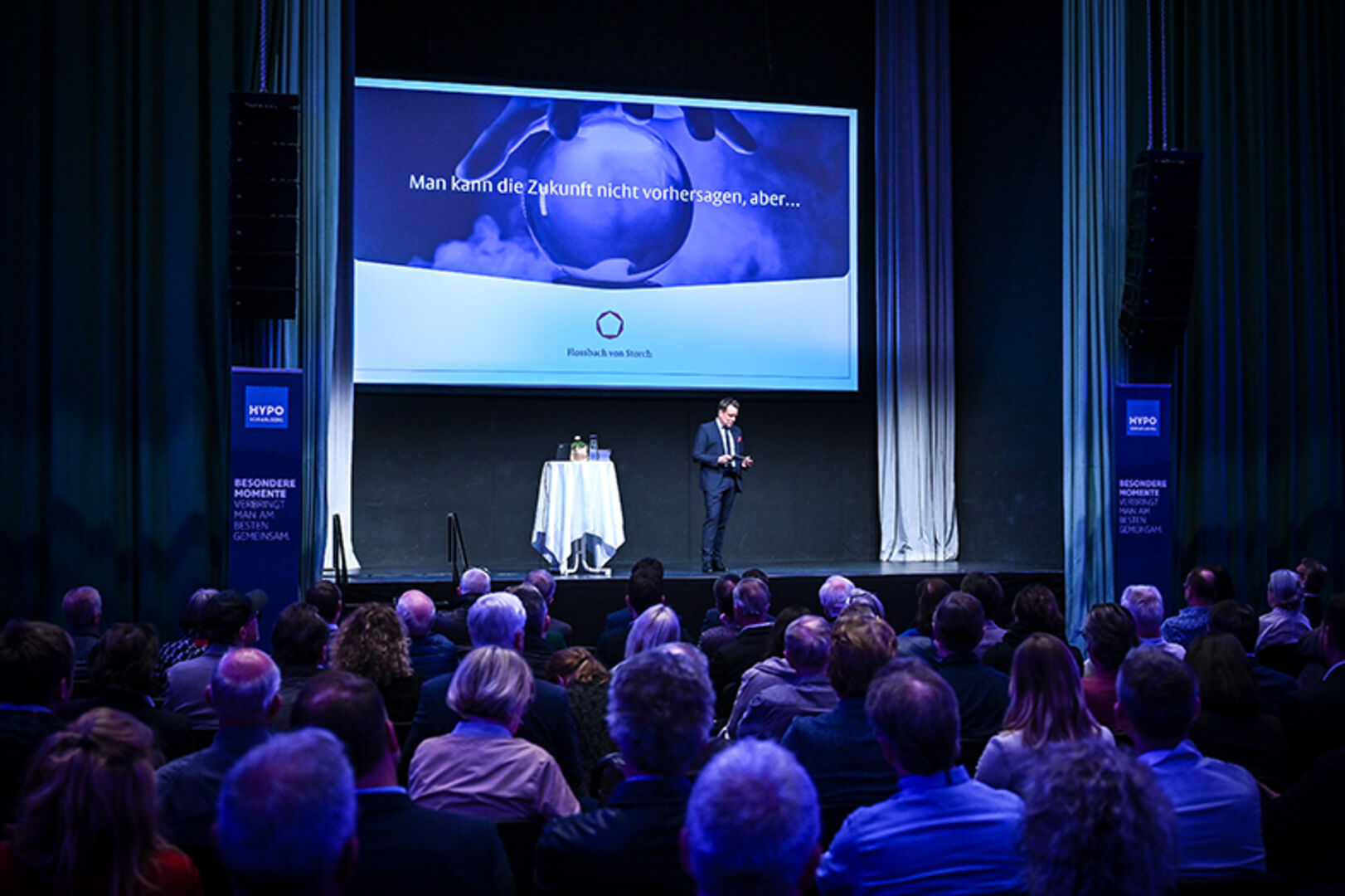 Wie passen florierende Aktienmärkte und trübe Konjunkturaussichten zusammen? Wann ist mit einem Zinsrückgang zu rechnen? Sind Kryptowährungen gekommen, um zu bleiben? Was passiert, wenn Trump die Wahl im Herbst gewinnt? Diese und weitere aktuelle Fragen standen im Mittelpunkt des alljährlichen Marktausblicks zu dem die Hypo Vorarlberg zahlreiche Kund:innen ins Firmament nach Rankweil lud.