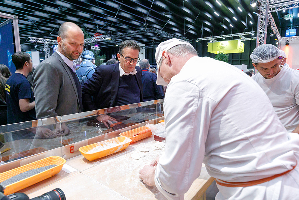 Landesrat Marco Tittler und WKV Präsident Hans Peter Metzler beim Messerundgang am Stand der Vorarlberger Bäcker.