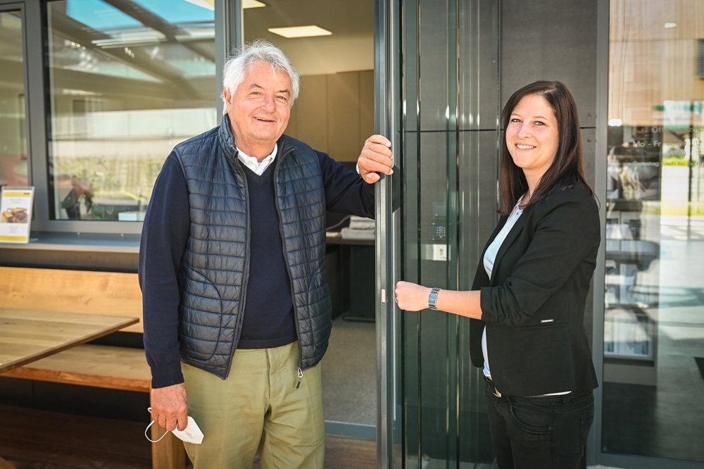 Glastrennwände bieten Schutz und Sicherheit: Harald Hornik (Dornbirn), Feuerstein-Beraterin Kathrin Müller.