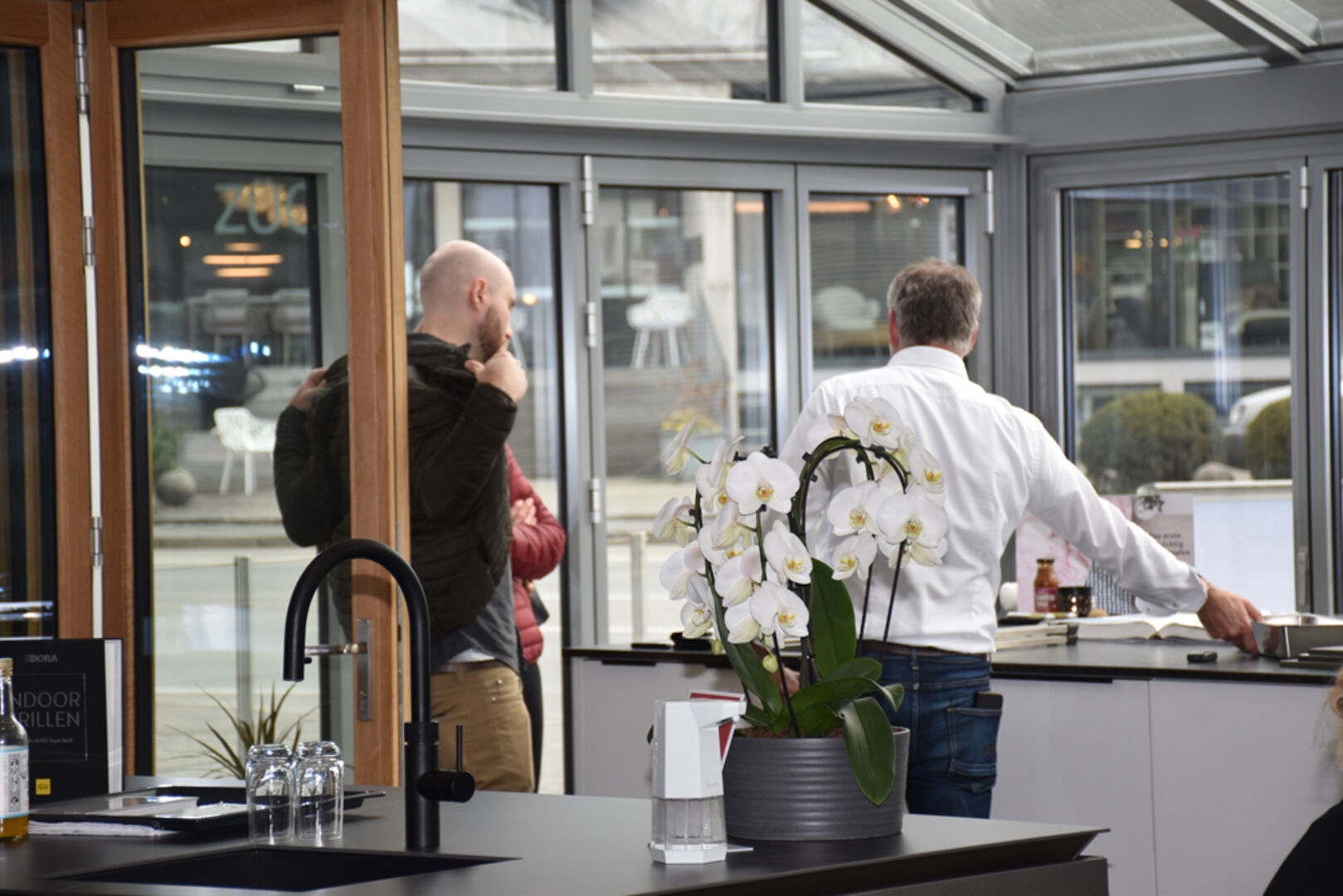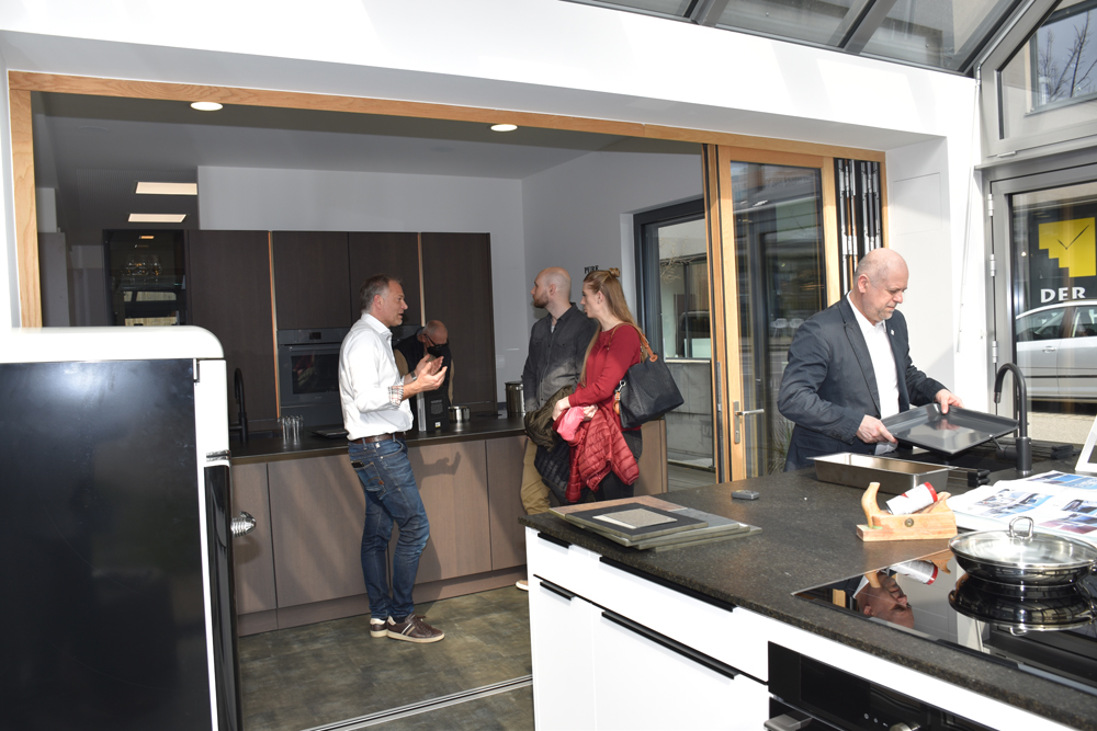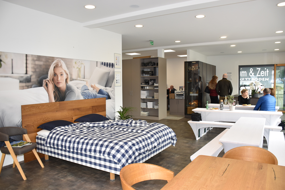 Die neuesten Trends wurden in der Wohnwelt in der Lustenauer Straße 58 gezeigt. Aber auch aktuelle Küchentrends oder die Türenausstellung mit über 120 Türen fanden großes Interesse. TOP: Geheimnisvoll war das exklusive und hochwertige Hästens-Boxspringbett, bis zur Weltpremiere noch unter einer schwarzen Samtabdeckung verborgen.