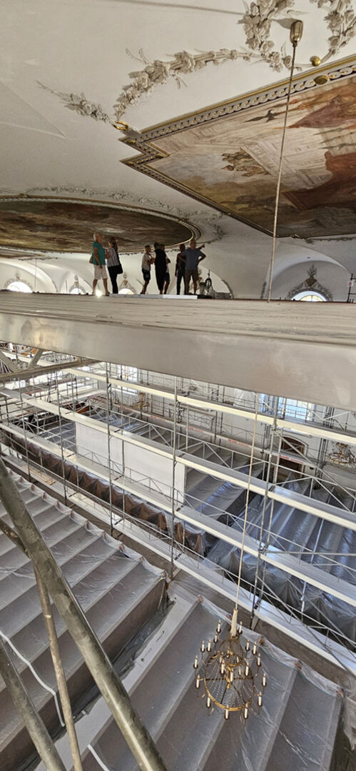In der Pfarre St. Karl bestand Handlungsbedarf. Um Schäden wie z.B. Risse in den Deckengemälden oder Schimmelbefall auszugleichen, wurde die Renovierung des gesamten Innenraums im Frühjahr 2023 begonnen. Ebenfalls überholt wird die berühmte Gollini Orgel, und auch die Erneuerung von Elektrik und Beschallung ist vorgesehen. Unter der federführenden Leitung von DI Renata Hämmerle-Török vom Bauamt der Diözese wurden die unterschiedlichen Gewerke, von der Errichtung des Gerüstes über die Reinigung und Ergänzung der Deckengemälde hin bis zur Planung der elektrischen Leitungen in Angriff genommen. Entscheidend für den erfolgreichen Abschluss der Arbeiten sind die Koordination und der gestaffelte Ablauf. Besondere Erwähnung verdient der neue Farbton der Stuckverzierungen in Grauweiß, welcher das bisherige Grün ersetzt. Diese Maßnahme, welche in Absprache mit dem Bundesdenkmalamt getroffen wurde, entspricht dem ursprünglichen Zustand und soll den Innenraum heller und luftiger wirken lassen.
