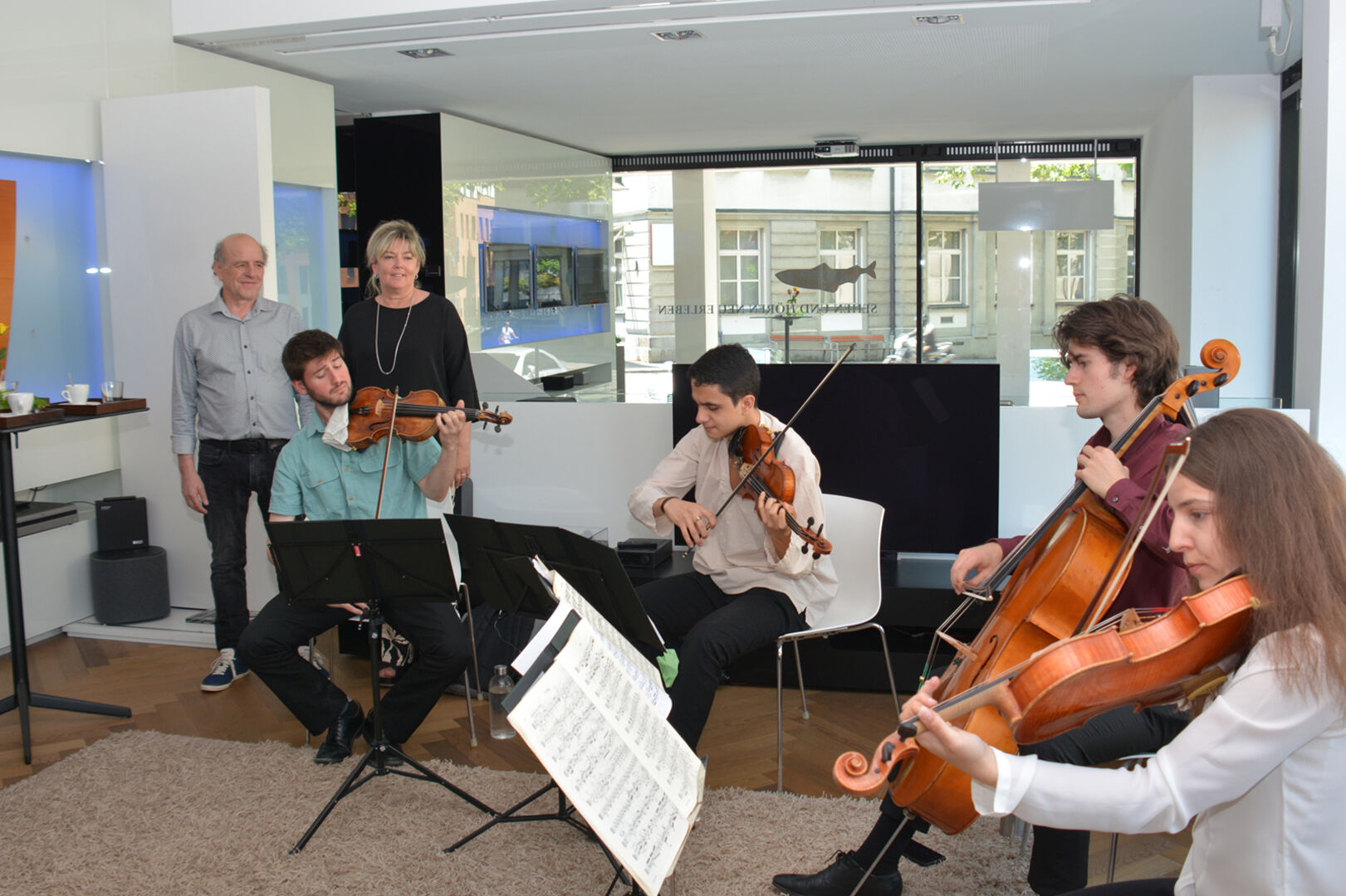 Mit Kontrabass und Violinen sorgten junge Nachwuchsmusiker:innen, ausgewählt von Pforte-Gründer Klaus und Claudia Christa für das von Marty Rauch mit dem inside-Team ersonnene Konzept „Klassik inside“ für ansprechende Minikonzerte an 13 ausgewählten Dornbirner Adressen. Der inside-Vorstand genoss diese ebenso wie die zahlreich erschienenen Gäste, Freunde und Kund:innen der teilnehmenden inside-Mitgliedsgeschäfte. TOP: In der Stadtpfarrkirche versammelten sich alle Musiker:innen und Gäste zu einem gemeinsamen Abschlusskonzert.