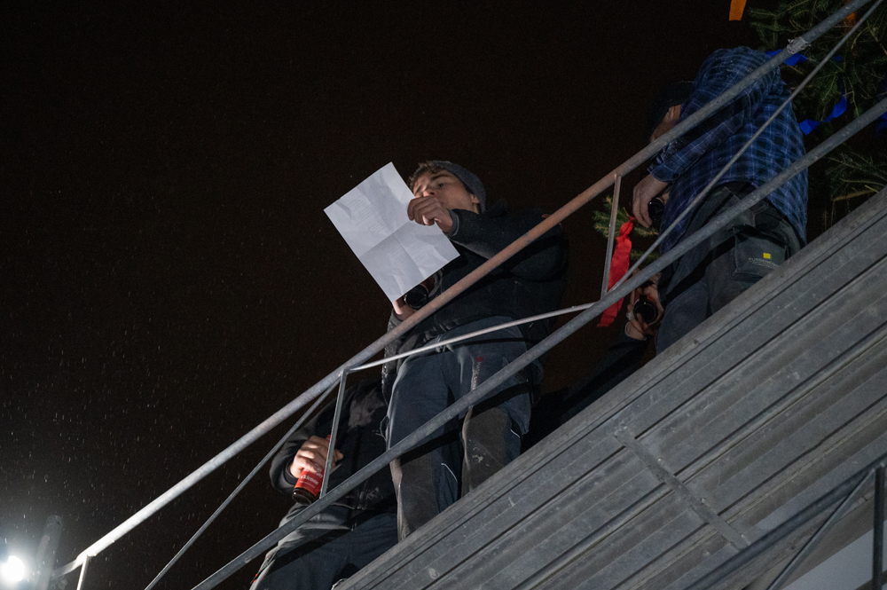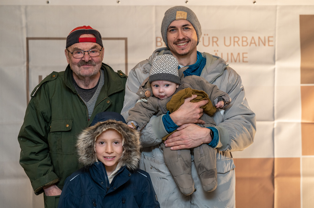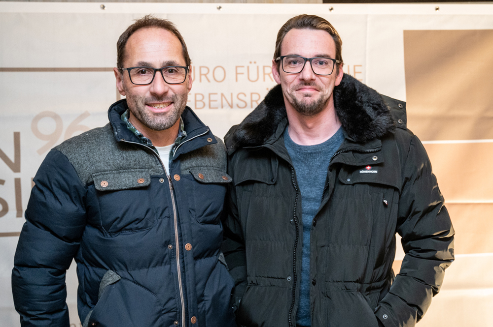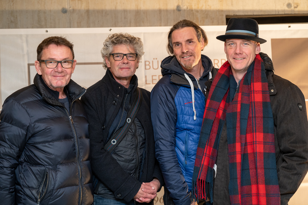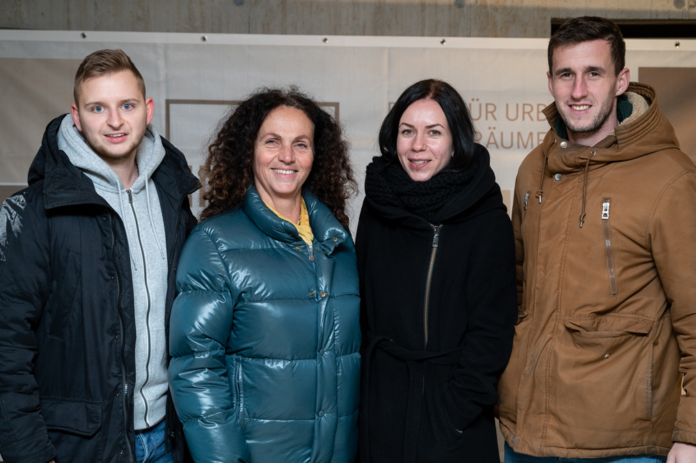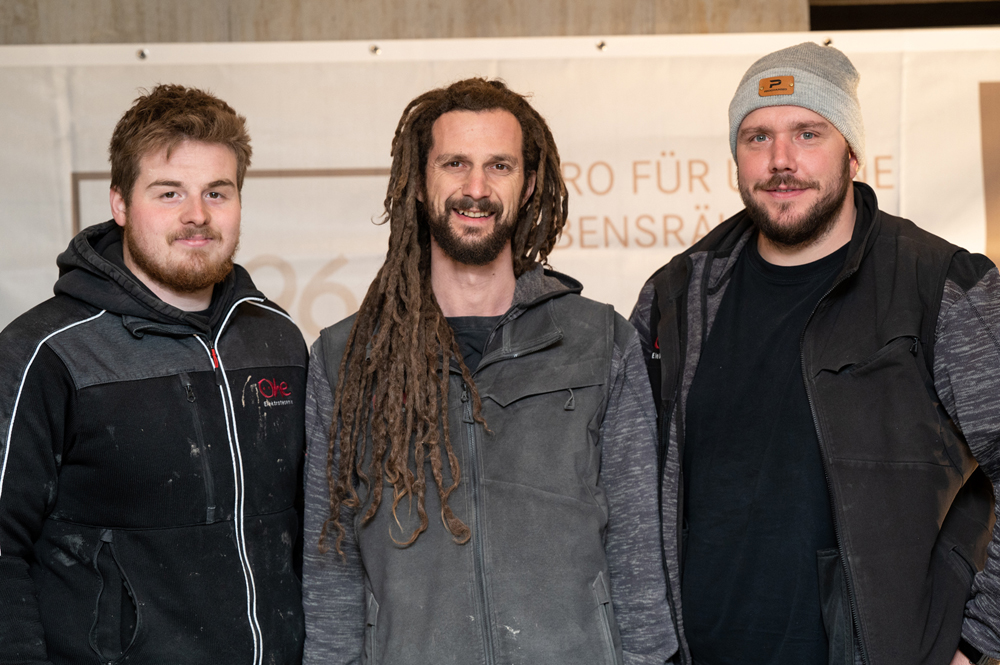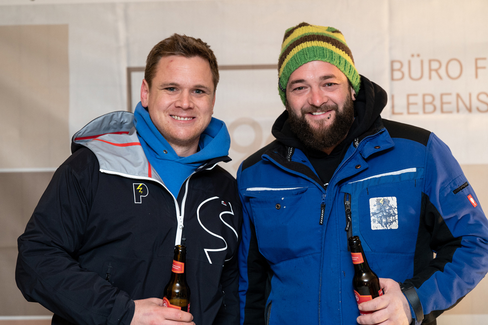 Gute Firstfeier-Stimmung beim INSIDE96 Team: Johann Rauchegger, Geschäftsführer Joe Welte, Matthias Lampl, Michael Amort, Valentin Welte und Matthias Brotzge (v. li.)