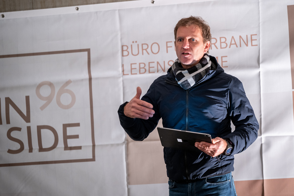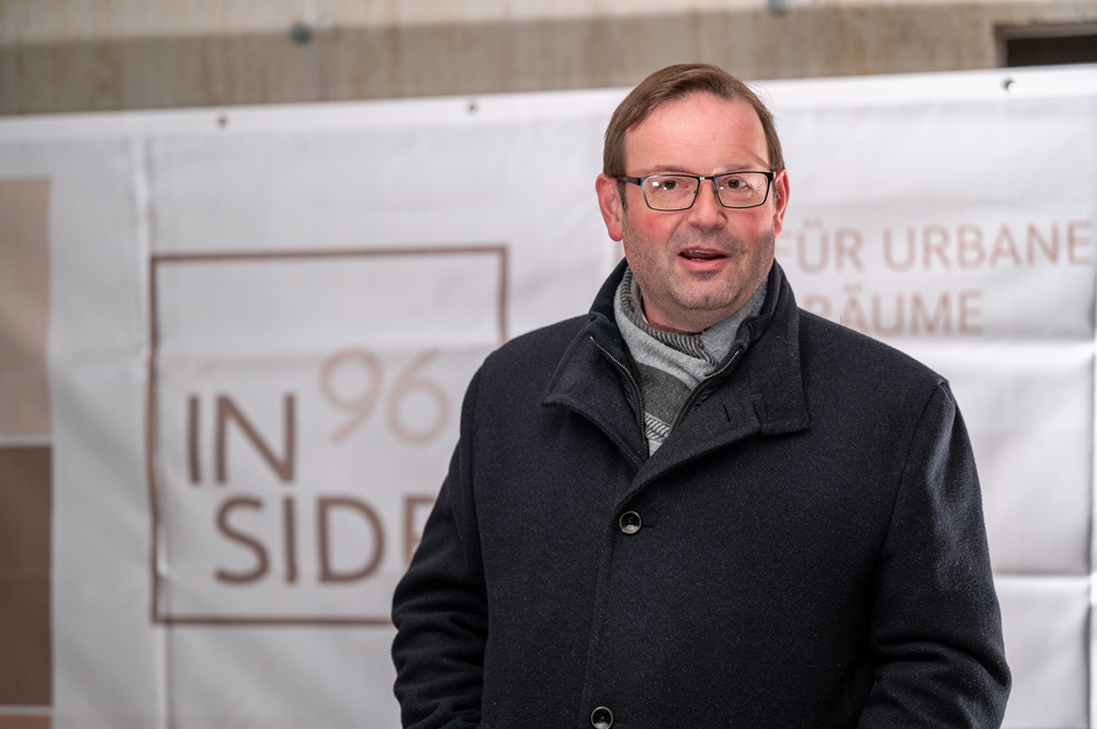Es entstehen zwei miteinander verbundene Wohn- und Geschäftshäuser mit Holzfassade und Satteldach. TOP: Der Bezug der ca. 140 m² Geschäftsfläche und ca. 850 Dienstleistungs- und Betreuungsflächen ist für Frühjahr 2023 geplant.