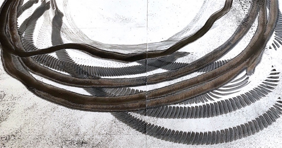 Großformatige Gemälde entfachen spielerisch die Geschichte der gestischen Abstraktion. Sie verschmelzen mit den eher ätherischen, düsteren Monumenten der Farbfeldmalerei einer anderen zeitgenössischen Malerin in der Ausstellung. Das alles führt zu einem Durcheinander von Zeichen und Gesprächen zwischen Lebenden und Toten.