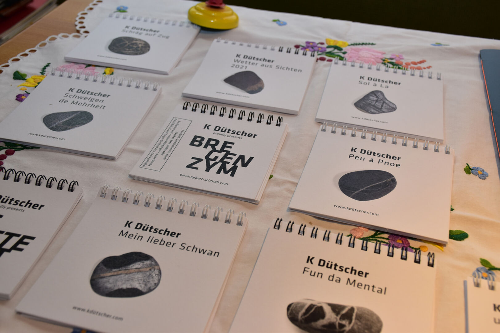 Der Bregenzer Egbert Schmoll gab einen besinnlich-heiteren Einblick in die Vielfalt seines Schaffens. Ein kleiner Kreis an Lebensbegleitern und Freunden horchte aufmerksam den Anekdoten, hatte er doch als jüngster (26 Jahre) deutscher Kinderheimleiter in den 70/80er Jahren viel Spannendes zu erzählen. TOP: Zitat: „Was wäre, wenn die Medaille die Seite kehrt?“