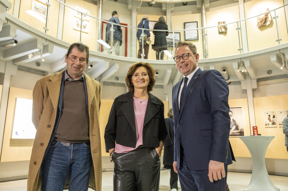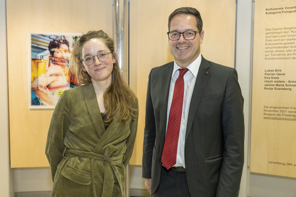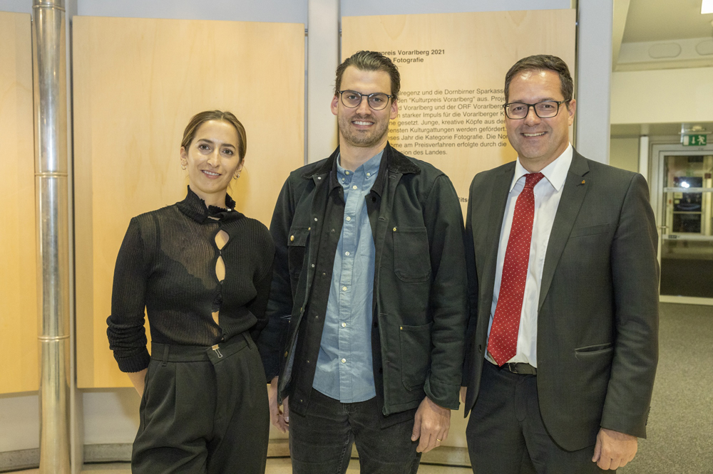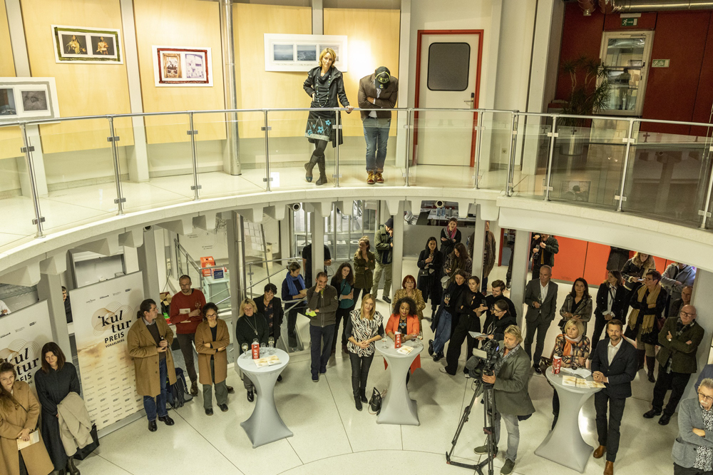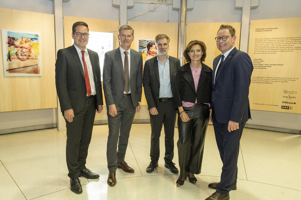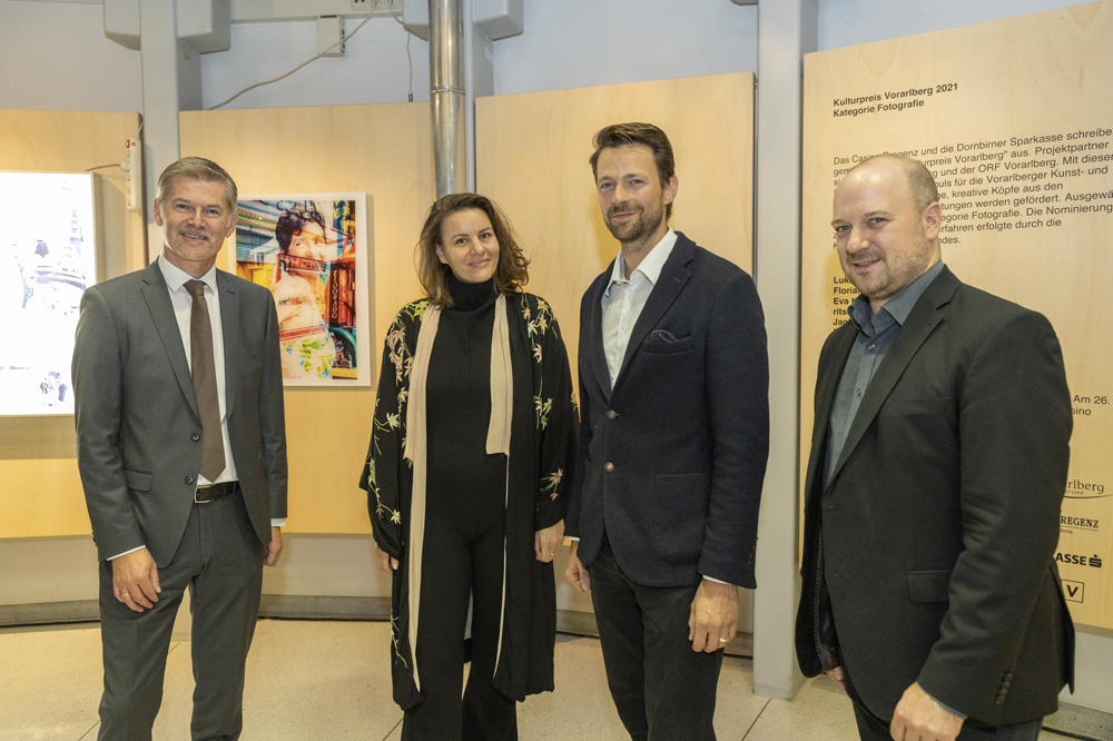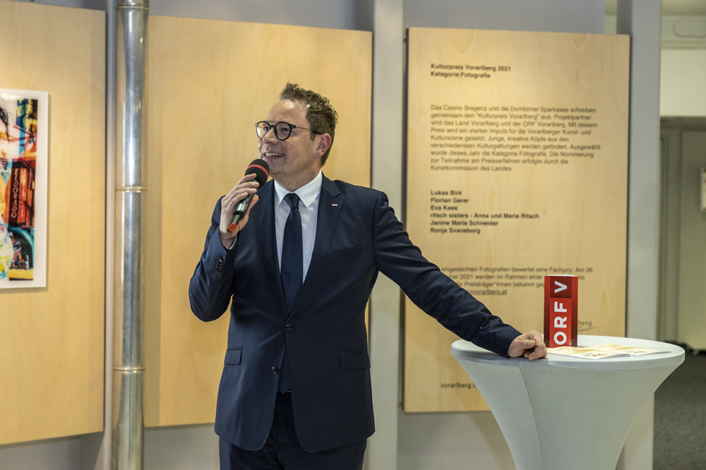 ORF-Landesdirektor Markus Klement und der Leiter der Kulturabteilung des Landes Vorarlberg Winfried Nußbaummüller begrüßten zahlreiche Kunstinteressierte im ORF-Landesfunkhaus Vorarlberg. Florian Gerer, Ronja Svaneborg, Janine Maria Schneider, Lukas Birk, Maria Ritsch und Eva Kees gaben Einblick in ihre Werke. TOP: Die Fotografien der Nominierten sind noch bis Ende Jänner 2022 im ORF-Landesfunkhaus Vorarlberg in Dornbirn bei freiem Eintritt zu sehen.