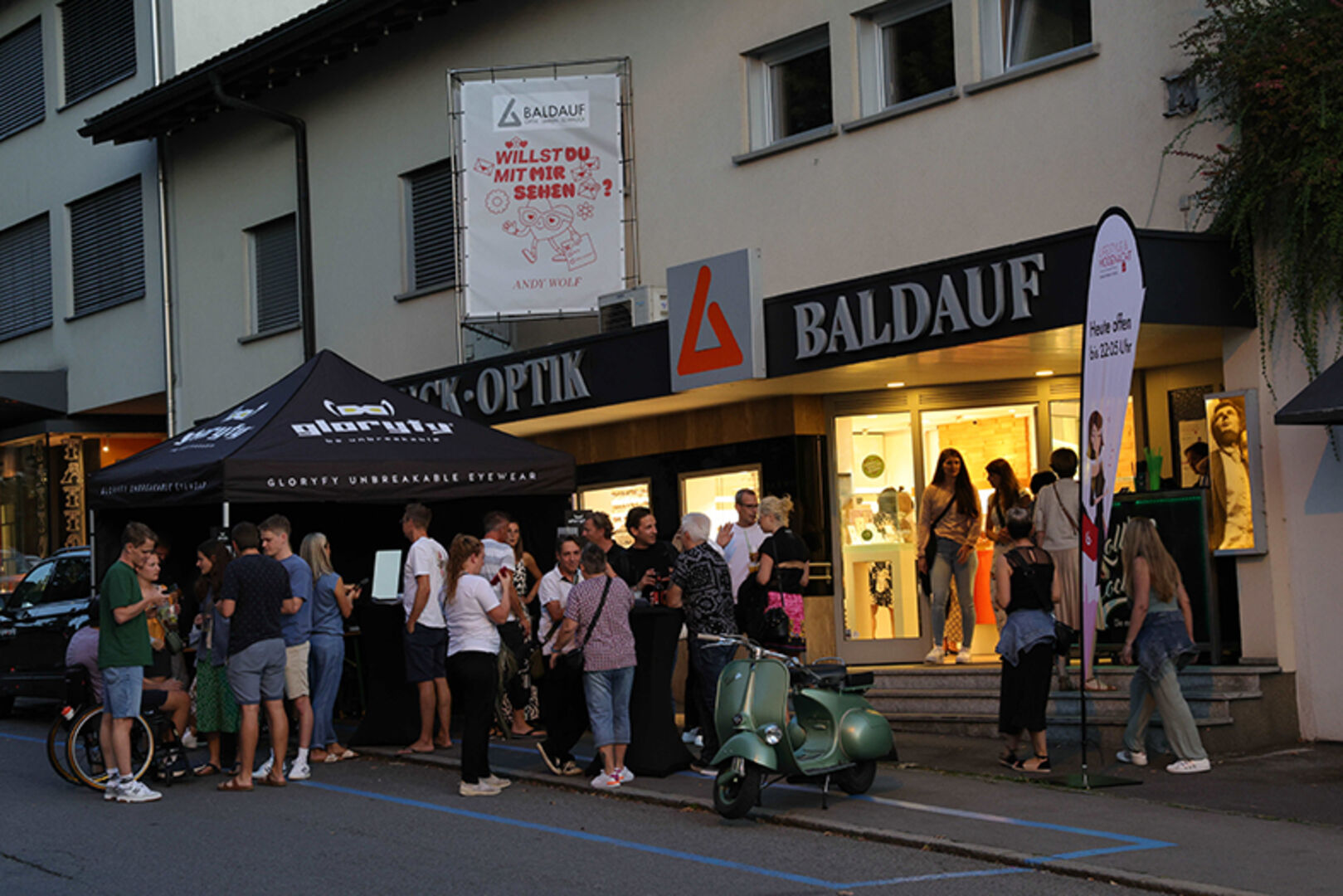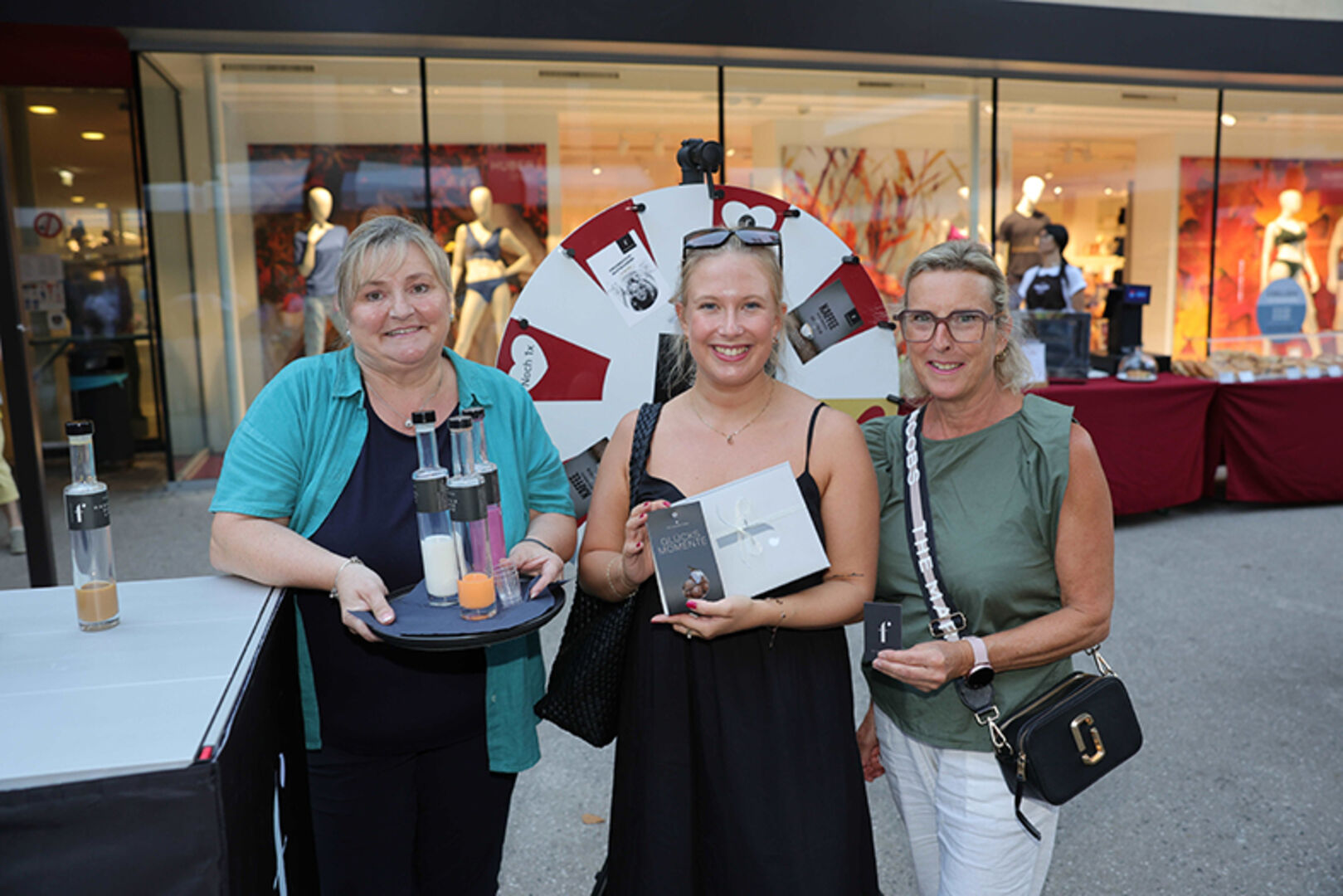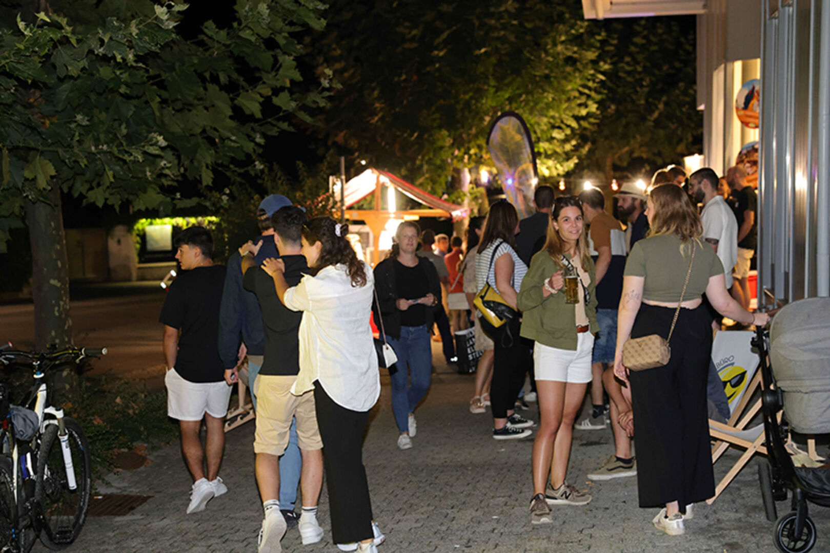 Beste Stimmung bei sommerlicher Atmosphäre bei der Shopping-Night, die tausende Gäste nach Götzis lockte. TOP: Der Flying Fox, bei dem die Hauptstraße in 12 Meter Höhe überflogen wurde.