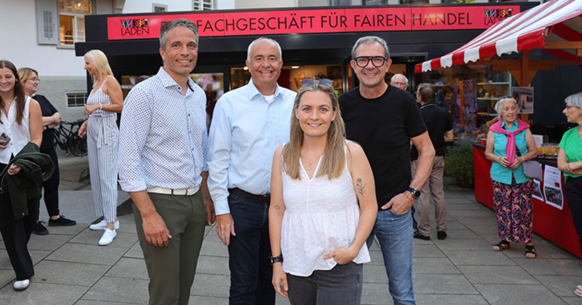 Götzis WG-Vorstand Clemens Seewald, Bürgermeister Manfred Böhmwalder und von PRISMA Conny Heindl und Vorstand Bernhard Ölz (v. li.)