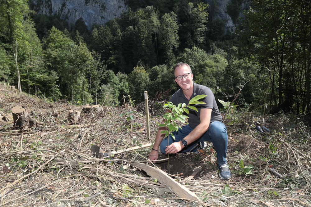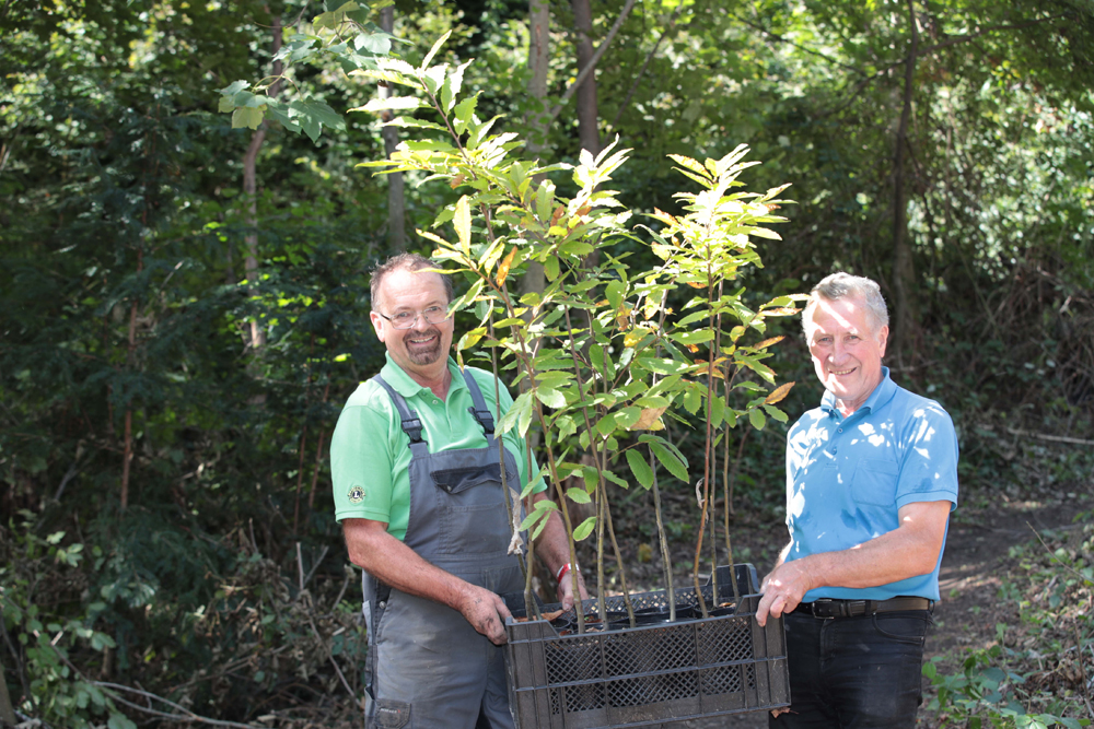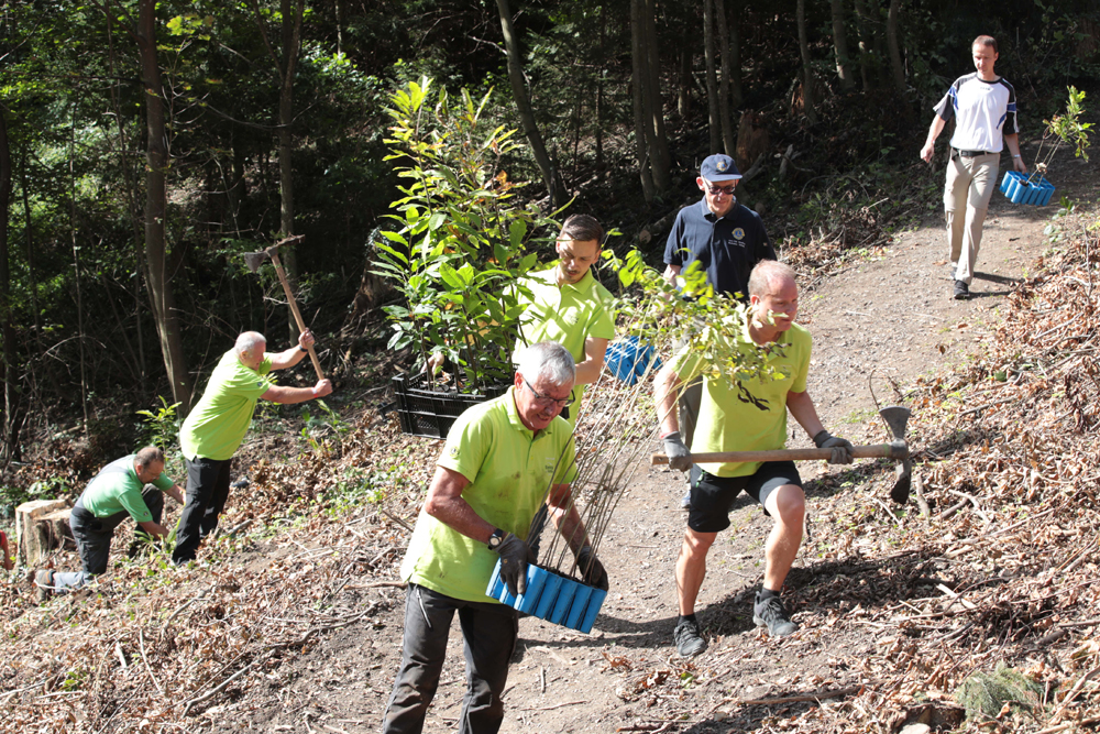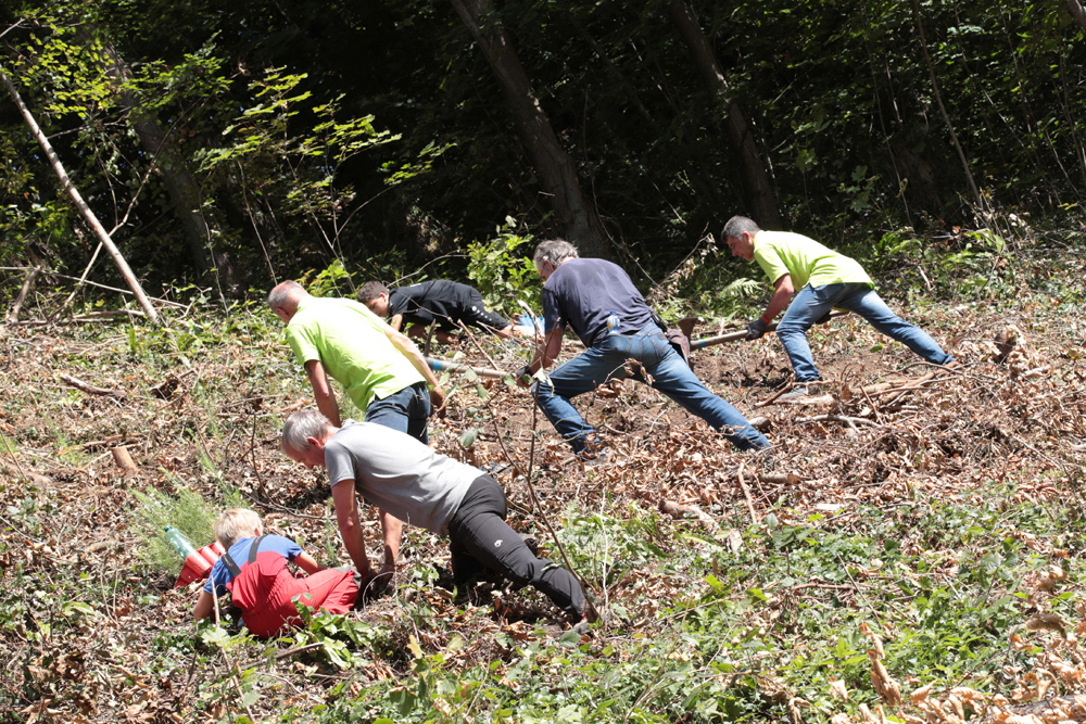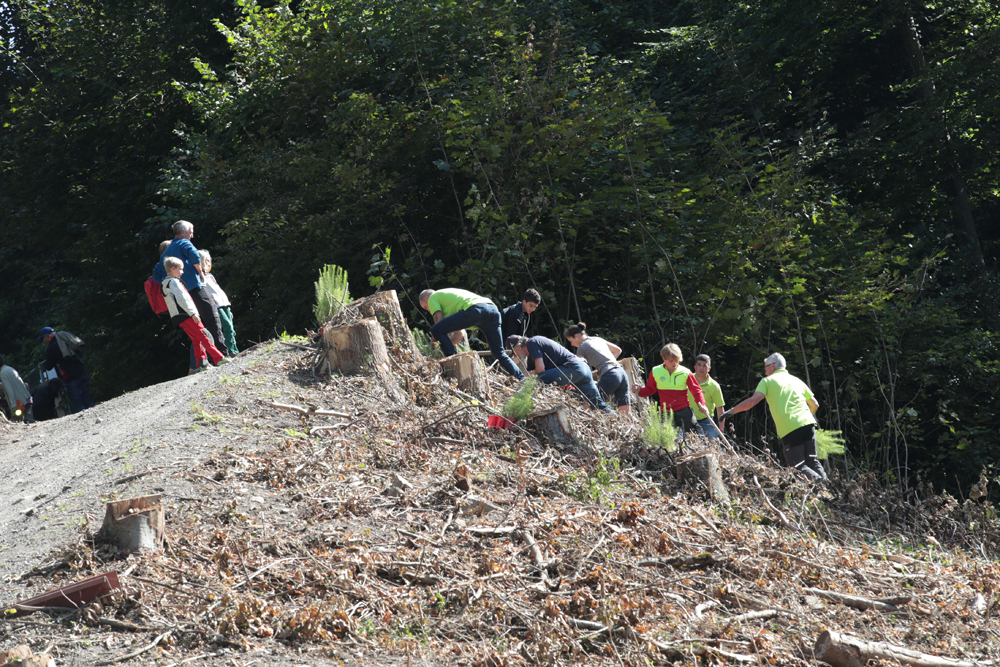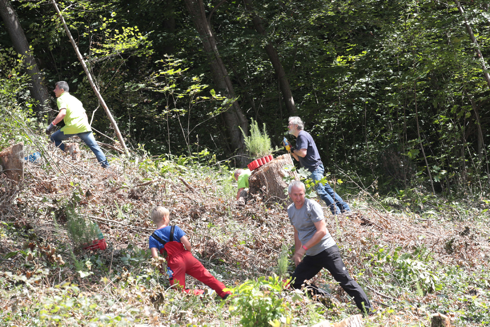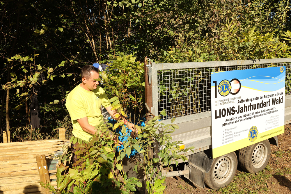 Jedes Jahr bepflanzt einer der Ländle-Clubs ein Waldstück mit jungen Bäumchen, heuer einen Bereich unterhalb der Götzner Burgruine „Neu Montfort“. 300 Teilnehmer setzten 2021 Lärchen,- Roteichen,- Rosskastanien- und Schwarznußbäumchen. Top: Die Unterstützung durch das Forstteam der Marktgemeinde, das dafür sorgen wird, dass die Jungbäume auch hochkommen und nicht etwa überwuchert werden.