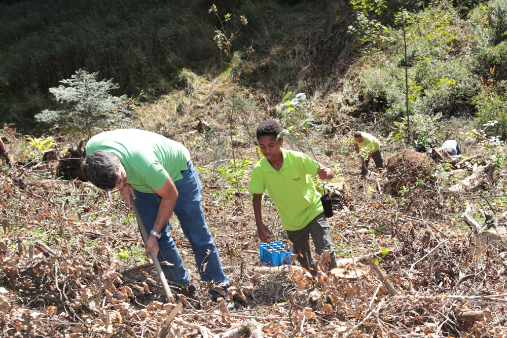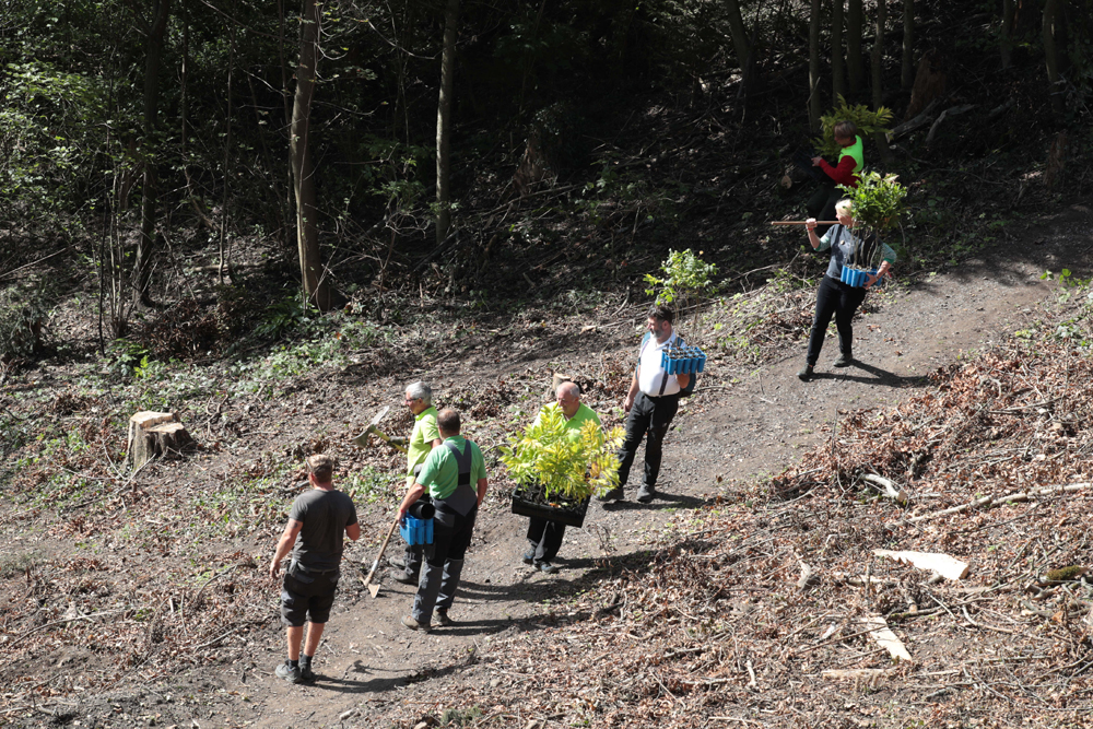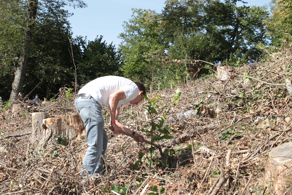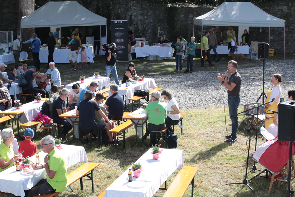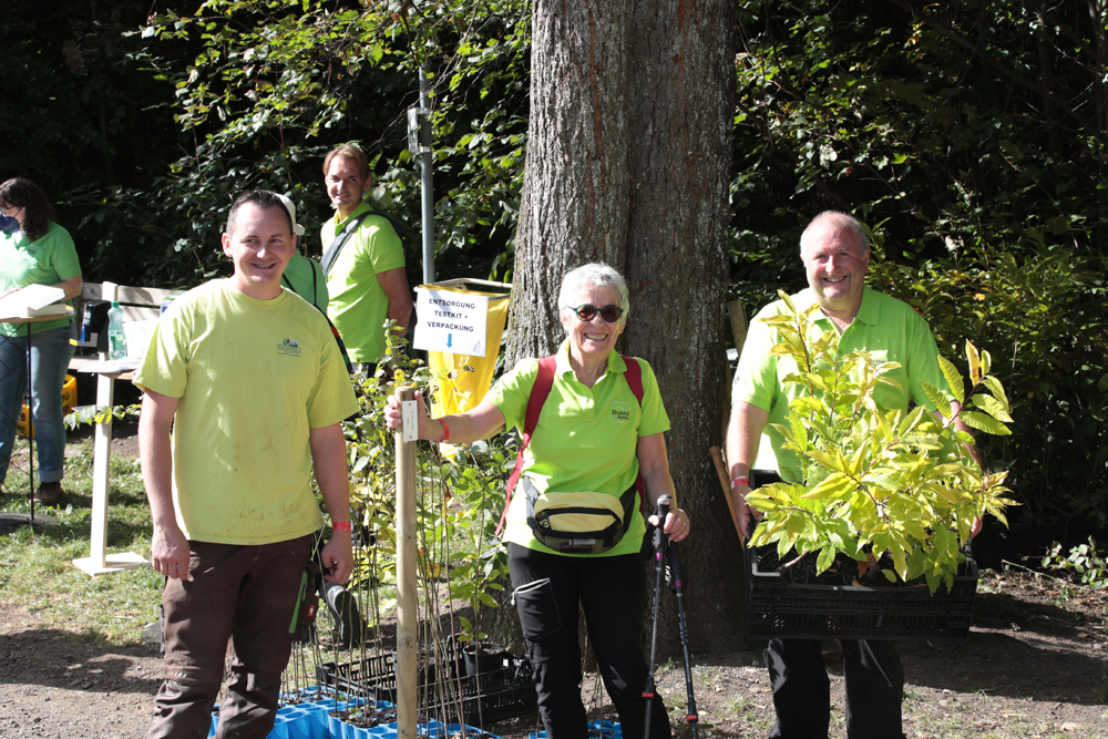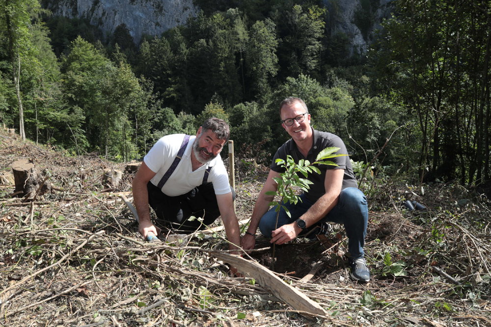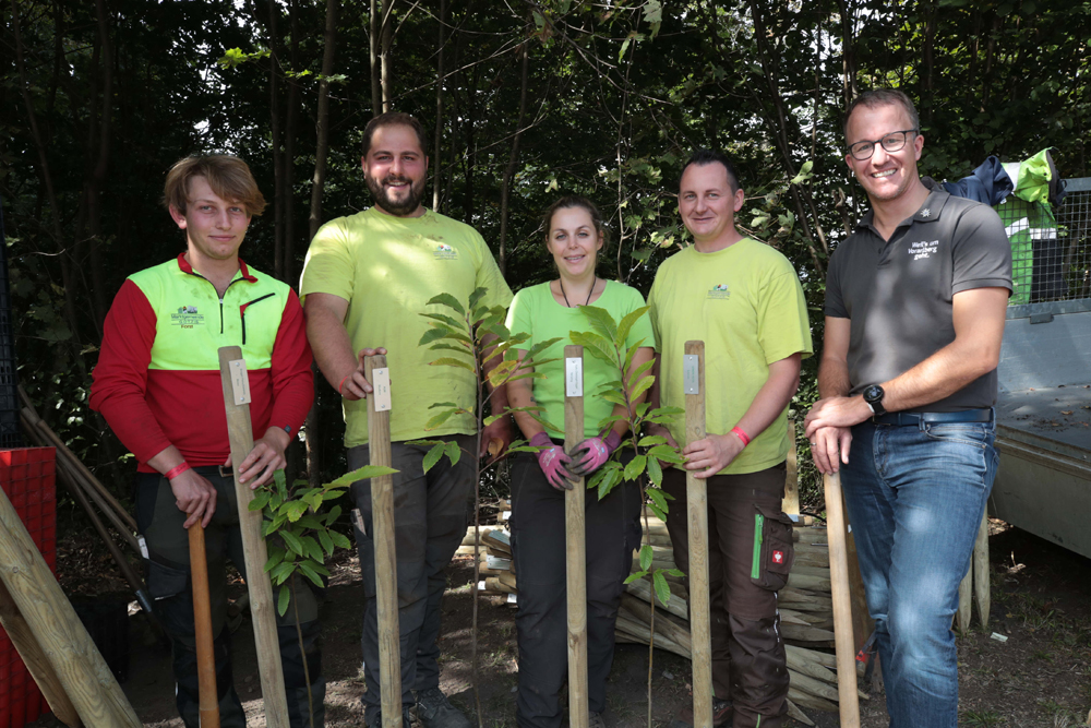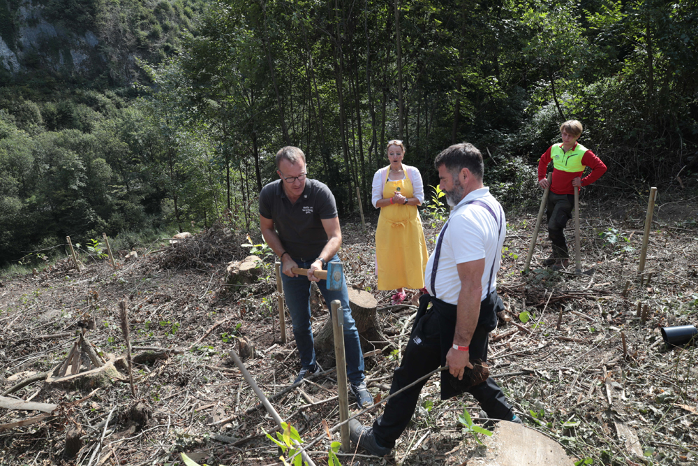 Jedes Jahr bepflanzt einer der Ländle-Clubs ein Waldstück mit jungen Bäumchen, heuer einen Bereich unterhalb der Götzner Burgruine „Neu Montfort“. 300 Teilnehmer setzten 2021 Lärchen,- Roteichen,- Rosskastanien- und Schwarznußbäumchen. Top: Die Unterstützung durch das Forstteam der Marktgemeinde, das dafür sorgen wird, dass die Jungbäume auch hochkommen und nicht etwa überwuchert werden.