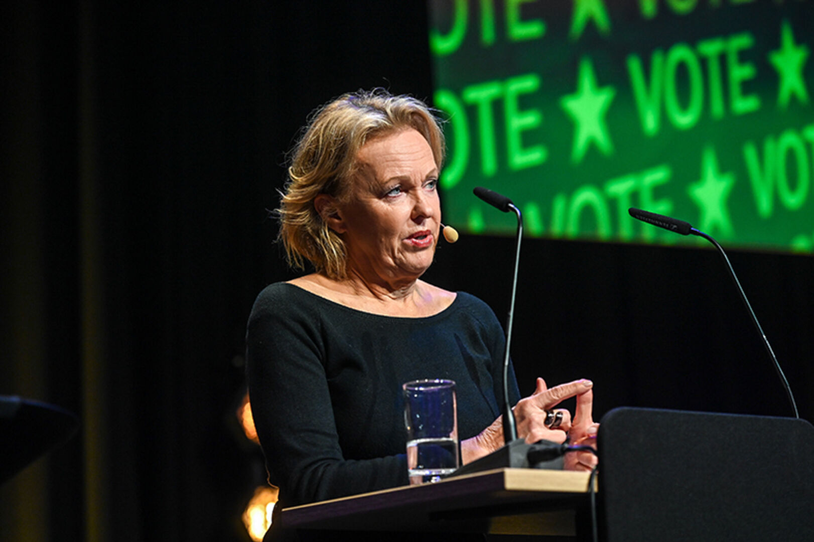 Sie sprach über Hintergründe und Folgen der Wahl. TOP: Mehr als 550 geladene Kunden der Vorarlberger Raiffeisenbanken waren an diesem Abend auf der Werkstattbühne des Festspielhauses Bregenz mit dabei.