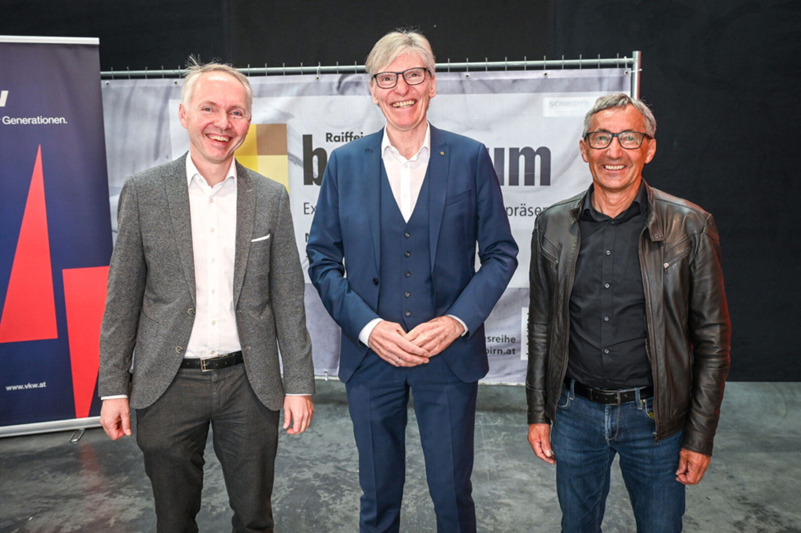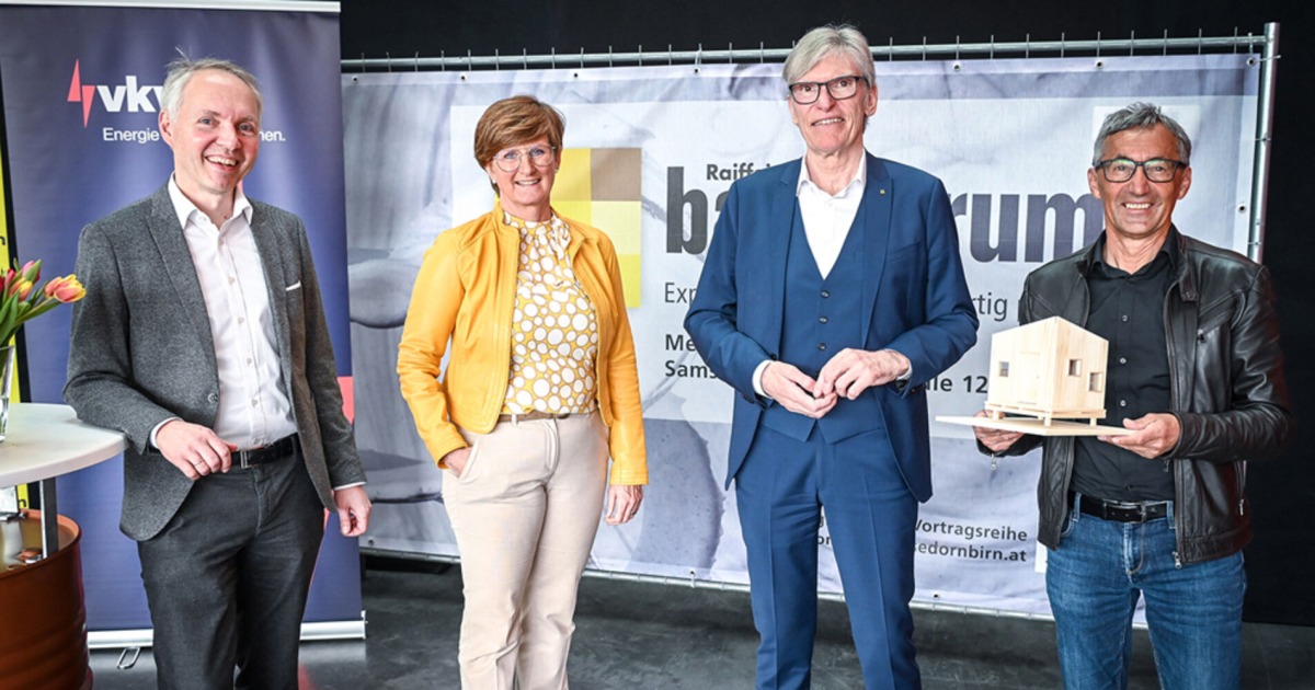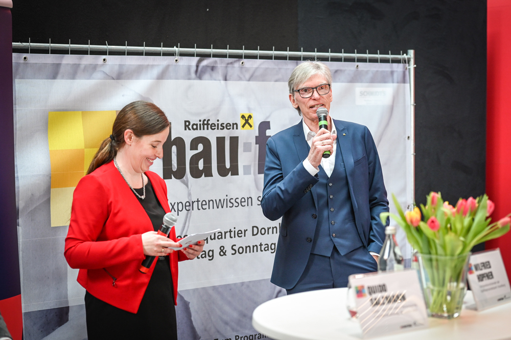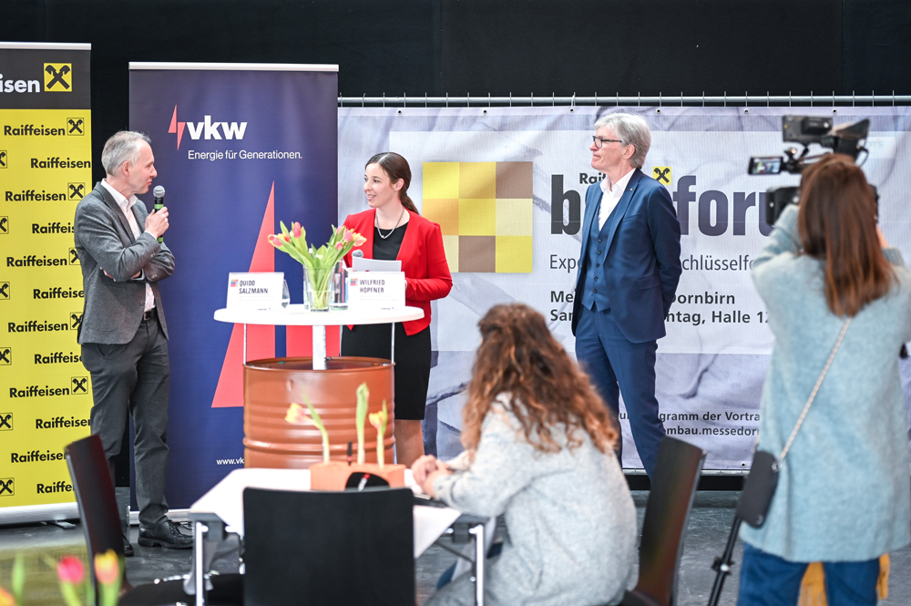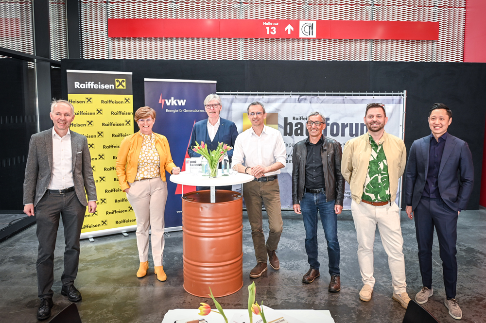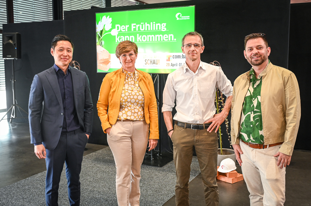 Com:bau Partner: Quido Salzmann (illwerke vkw), Messe GF Sabine Tichy-Treimel, Vorst. Vors. Wilfried Hopfner (Raiffeisen Landesbank) und Arnold Schmid (HTL…