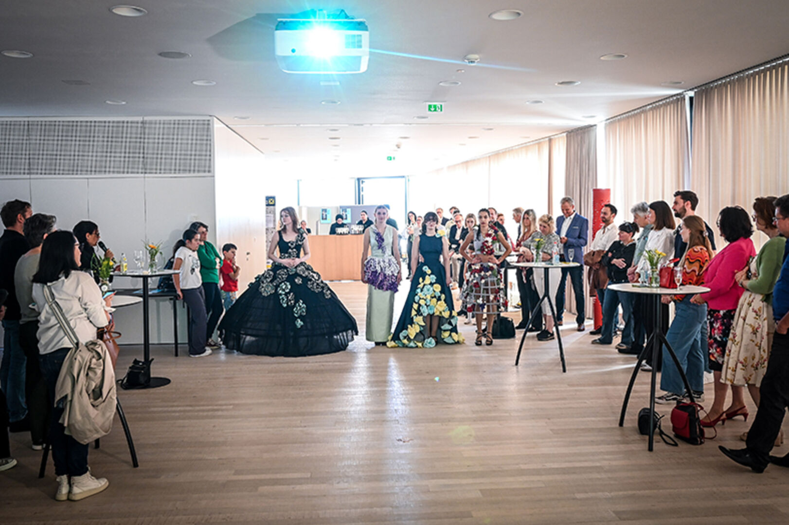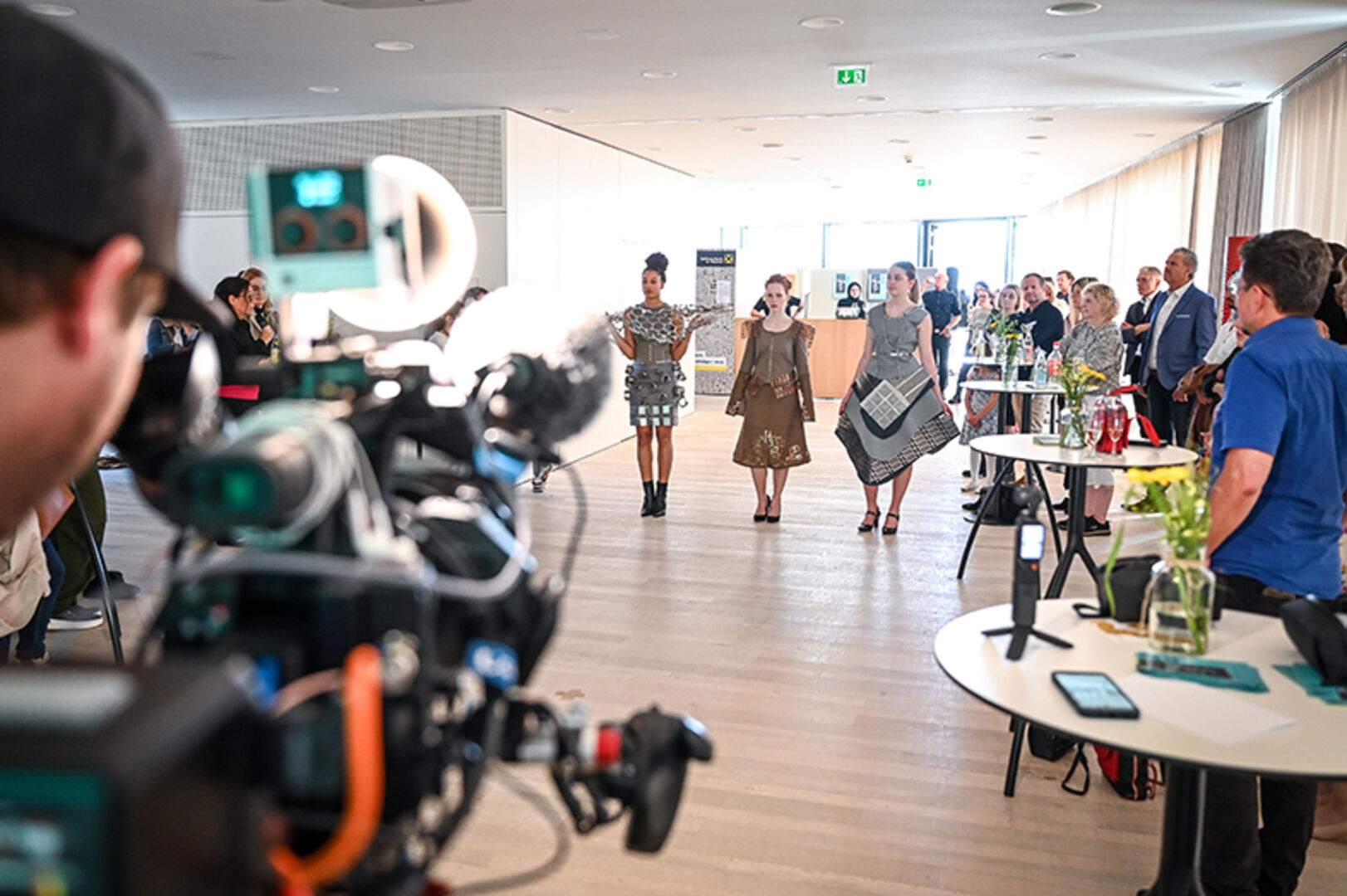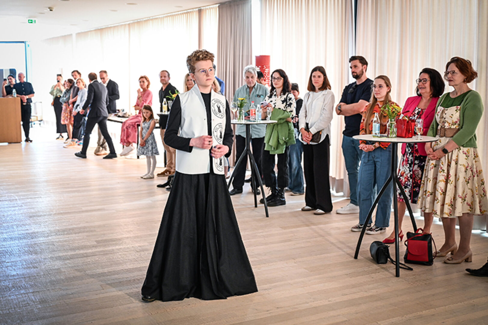 Imposanter Präsentation der jungen Designer:innen bei der Modeschau im Raiffeisenforum Dornbirn.