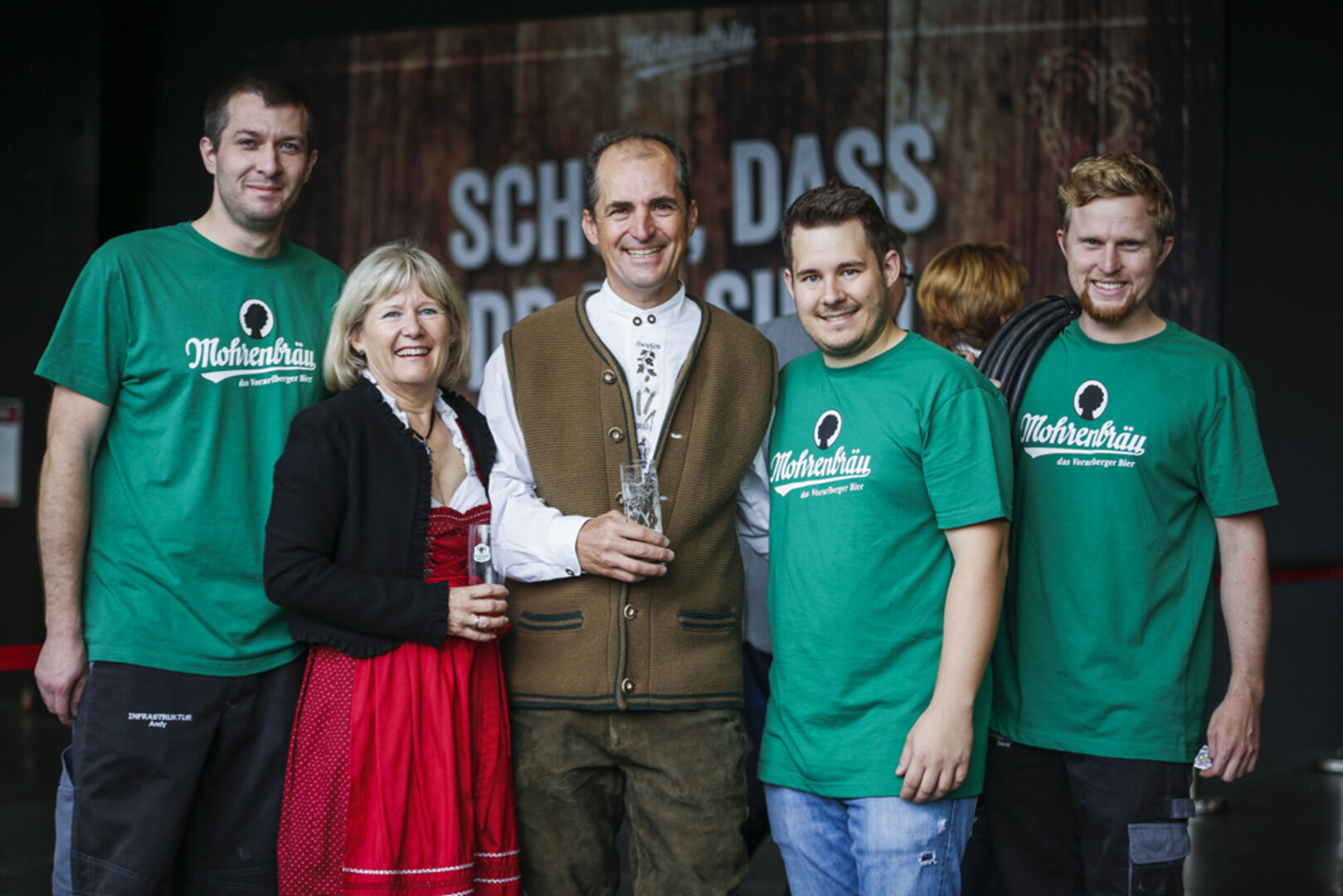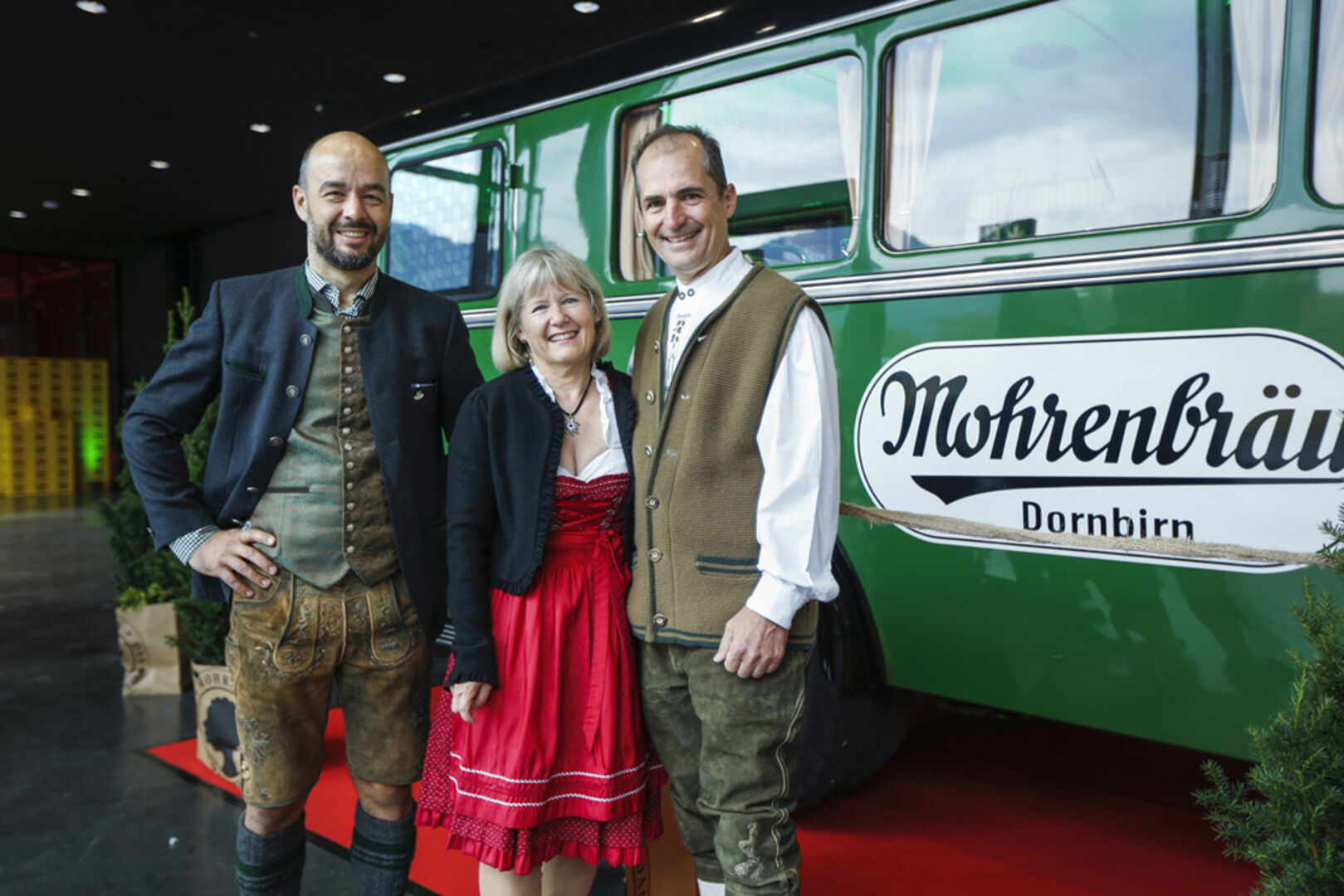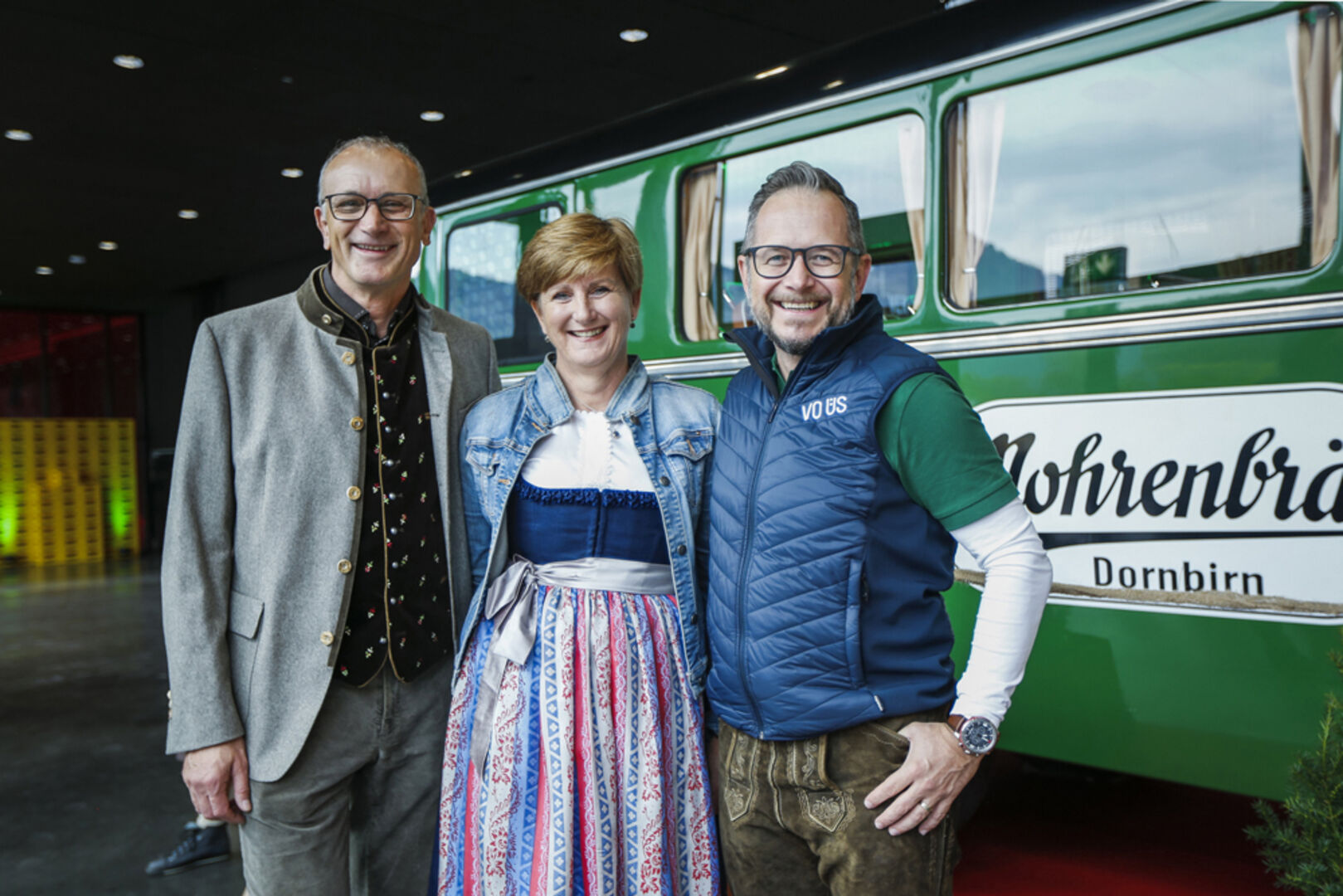 Braumeister Tim Groeger, Dornbirn Bürgermeisterin Andrea Kaufmann und LR Marco Tittler (v. li.)