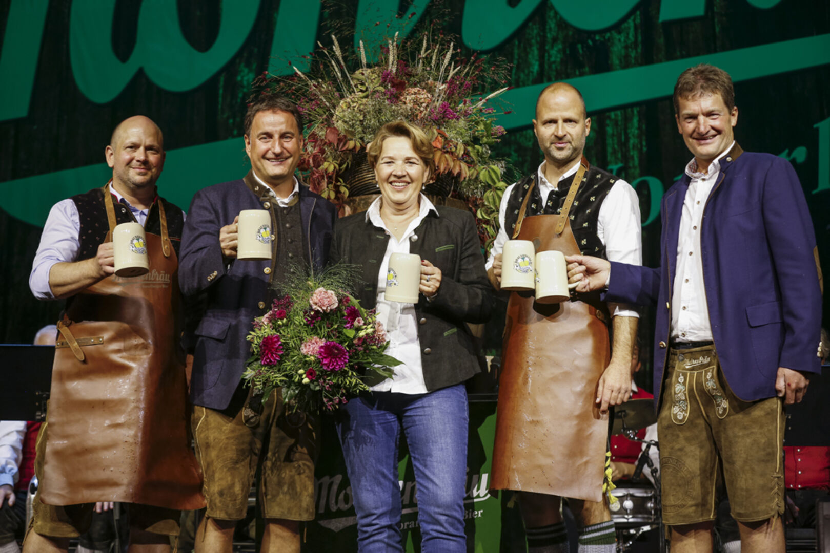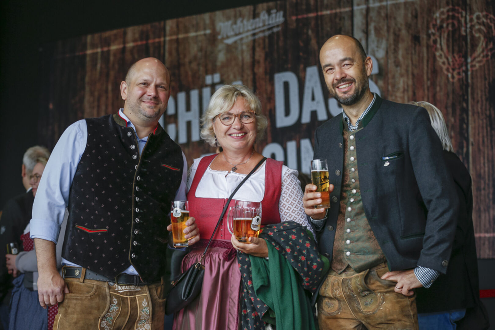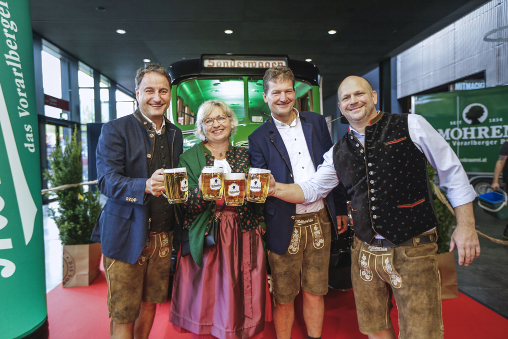 Braumeister Tim Groeger, Dornbirn Bürgermeisterin Andrea Kaufmann und LR Marco Tittler (v. li.)