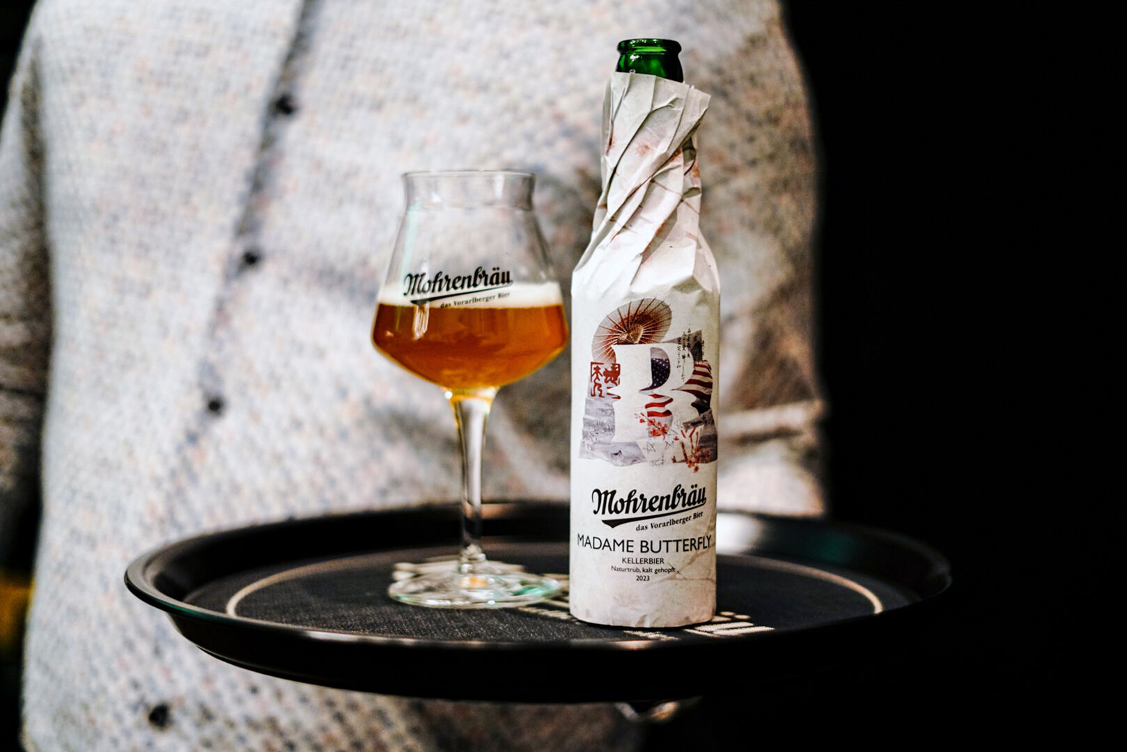 Dunkler Bernstein und cremig-sahniger Schaum: Die Dornbirner Mohrenbrauerei kreierte ein Kellerbier für die Festspiel-Oper „Madame Butterfly“. Die handgebraute Spezialität besticht laut den Biersommeliers mit „fruchtigen Noten und einem Hauch Pfirsich, einer feinen Bittere und einem spritzigen Abgang.“ Das limitierte Festspielbier wurde am 17. Juli von Mohrenbrauerei-Geschäftsführer Thomas Pachole, Intendantin Elisabeth Sobotka, Präsident Hans-Peter Metzler und dem kaufmännischen Direktor Michael Diem bei der Generalprobe der zweiten Auflage von „Madame Butterfly“ präsentiert.