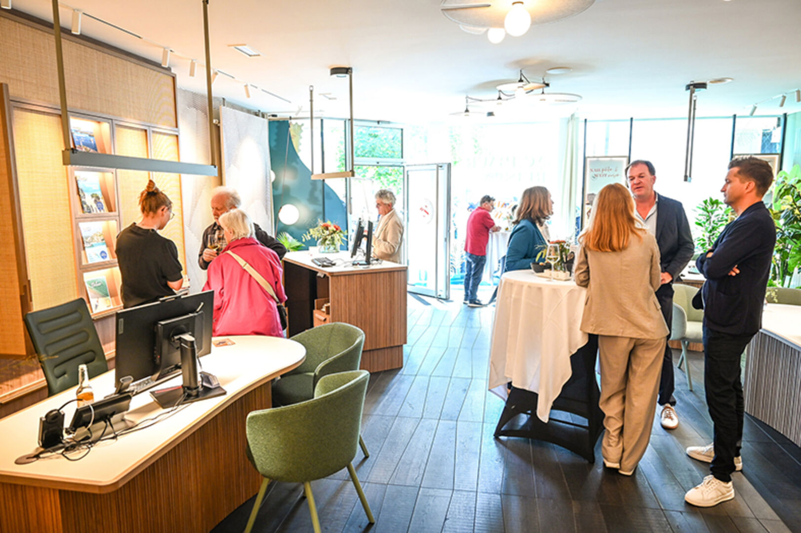 Nach dem Umzug hat sich das Reisebüro in eine einladende Hotellobby verwandelt, die bereits beim Betreten Urlaubsstimmung versprüht. TOP: Bei köstlichen Snacks & Drinks sowie Gewinnspiel informierten sich die Besucher über spannende Kurz- und Fernreisen sowie maßgeschneiderte Gruppen- und Arrangementreisen.